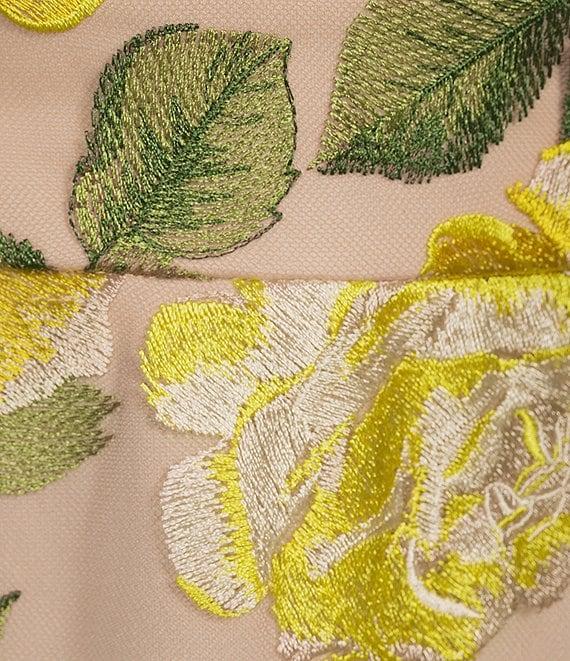 R & M Richards V-Neck Sleeveless Yellow Rose Embroidered Dress