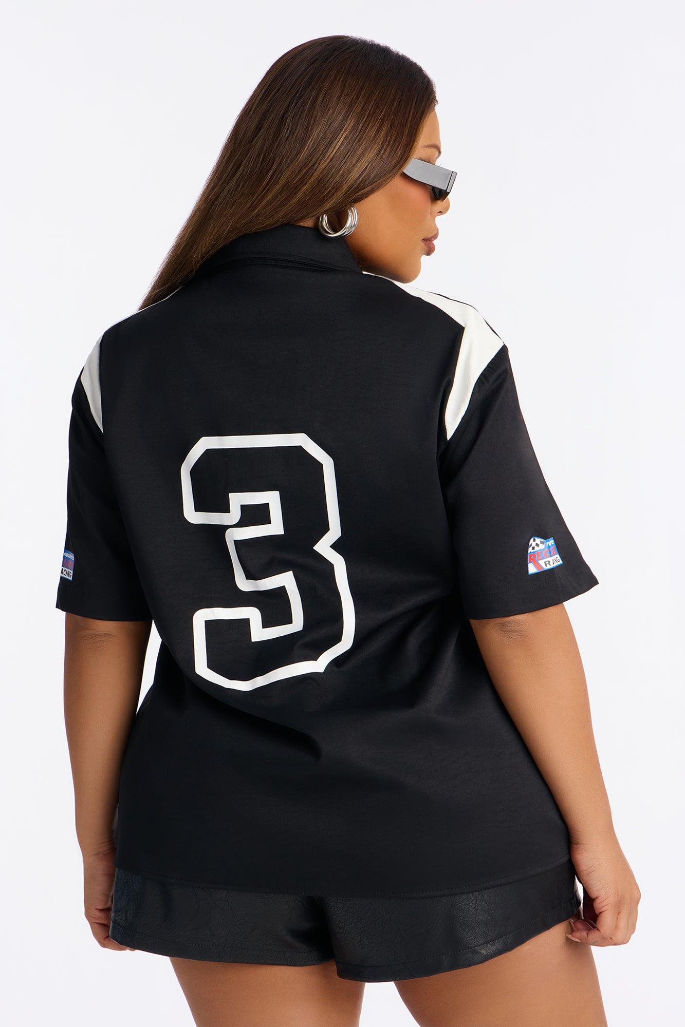 Racer Babe Button Up Top - Black Female