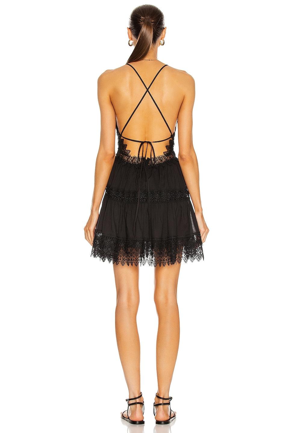 mini dress90% cotton, 10% poly / Made in Portugal / Hand wash / Partially lined / Criss-cross back straps with tie closure / Embroidered lace detail throughout / Hidden back zip closure / Ruffled hem / Our Style No. CRUI-WD15 / Manufacturer Style No. 211604 / Model is wearing size S.