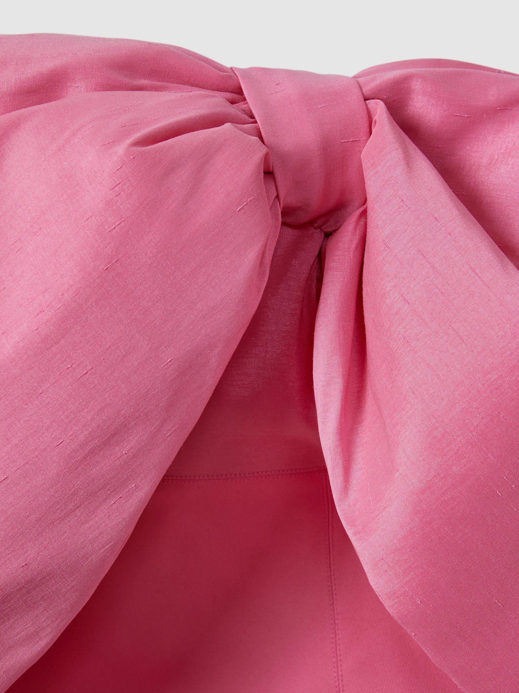 The Kace mini dress is fitted with an exaggerated bow detail across a strapless neckline and it wraps around the back, creating an off-the-shoulder sleeve. The bust is boned and edged with framilon for a secure, supportive fit. Strapless Exaggerated bow detail Internal boning Framilon edging Zip-closure to reverse Mini length Rachel Gilbert, curated by Reiss, is a collection of Australian womenswear specialising in luxe, ready-to-wear gowns with dramatic detailing, ideal for your most notable moments.