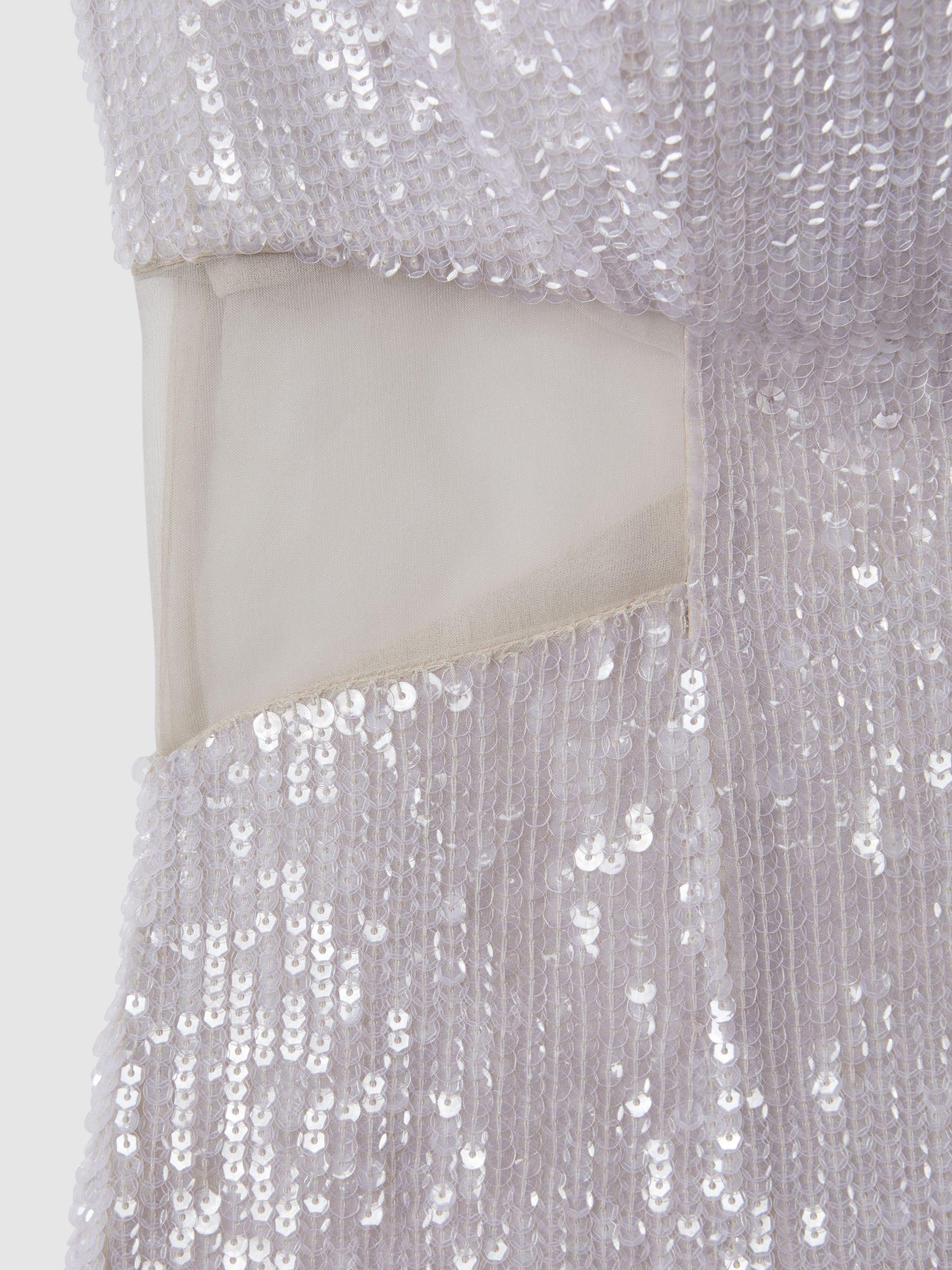 Crafted from a slim-fitting sequin fabrication, the Foster maxi dress is fitted with mesh cut-outs and internal boning. It’s designed with shoulder straps and an asymmetric strap which clasps around the neck like a choker. Sequin fabrication Asymmetric neck strap. Cut-outs beneath bust. Internal boning. Side split Maxi length Fitted Rachel Gilbert, curated by Reiss, is a collection of Australian womenswear specialising in luxe, ready-to-wear gowns with dramatic detailing, ideal for your most notable moments.