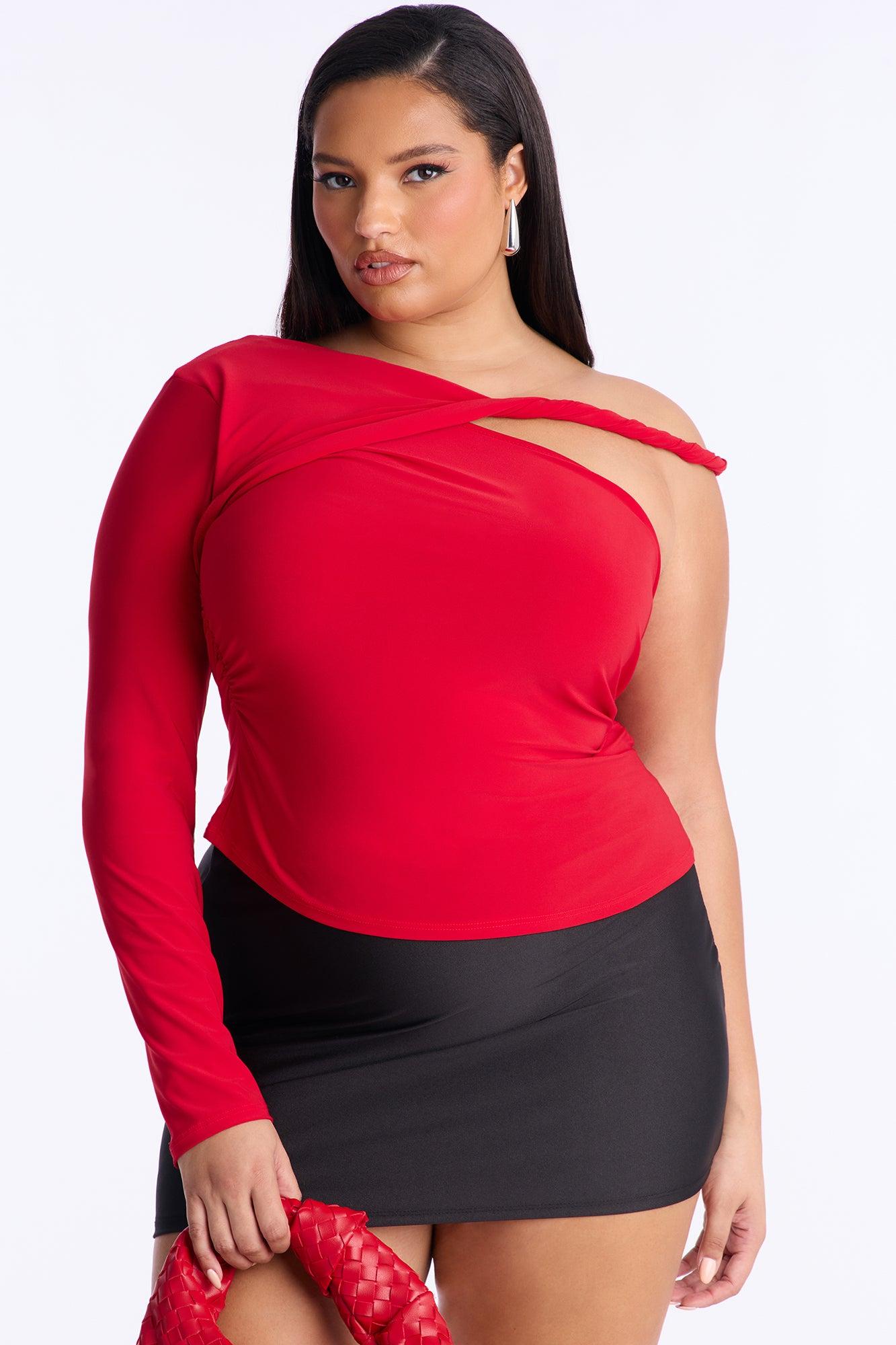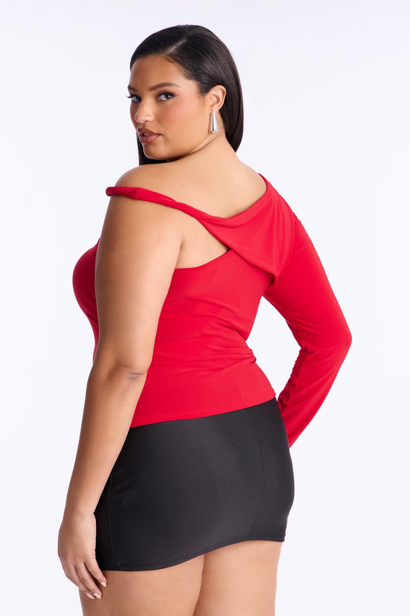 Rachel Off Shoulder Twist Long Sleeve Top - Red Female