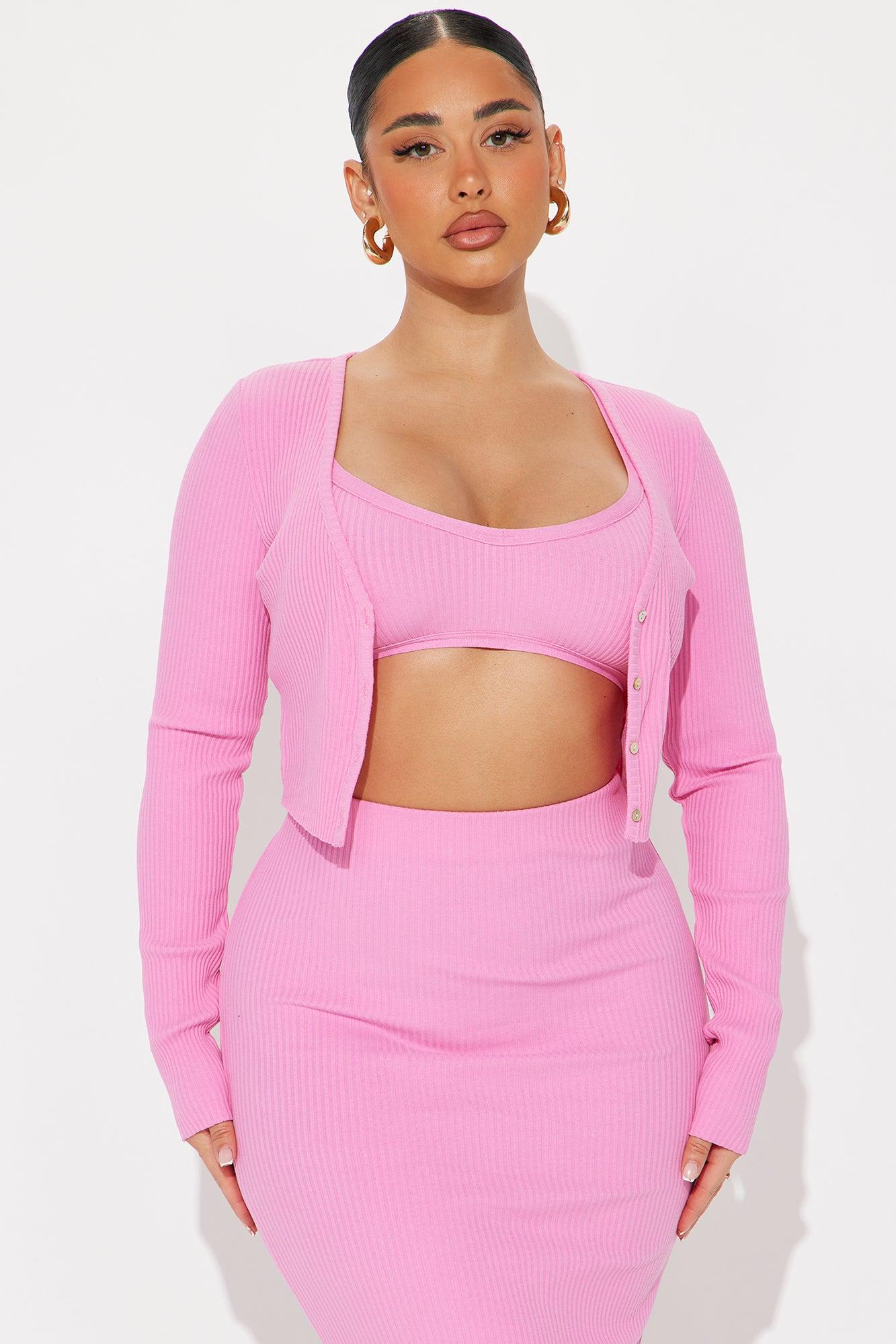 Rachel Ribbed 3 Piece Set - Hot Pink