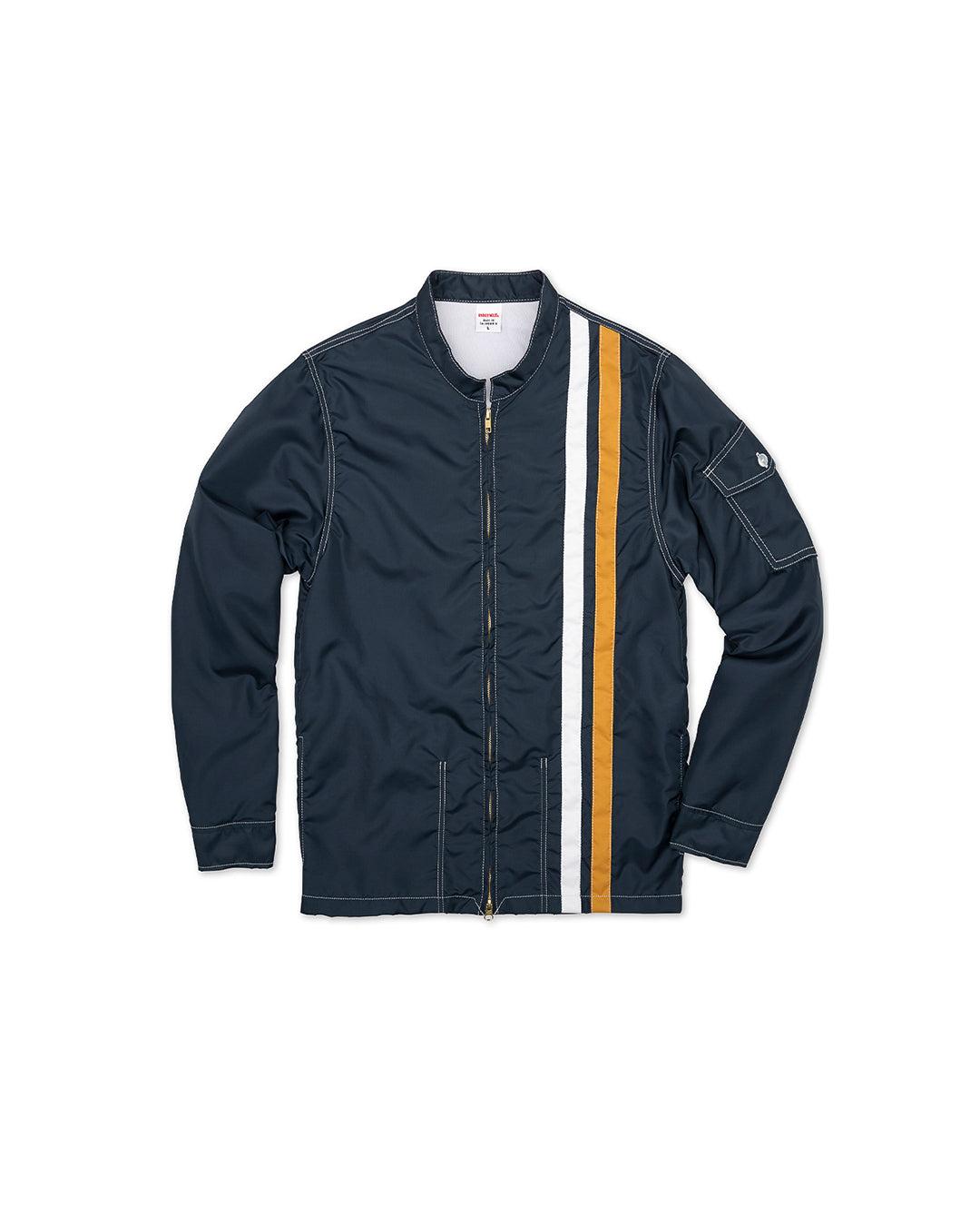 Classic 'Racing Jacket' influenced by 60s surf & hot rodding. A staple since '62. The 2025 Birdwell Racing Jacket combines classic SurfNyl® durability with a new anti-snag Talon zipper, made by the original zipper innovators. Built for everyday wear, this upgraded jacket offers smooth, reliable performance while staying true to Birdwell’s American-made heritage. Features: Band collar. Two-way zipper. Racing stripes on wearer’s left chest and signature Birdwell pocket on sleeve. Birdwell woven label on beck left hem. Hip pockets hidden at side seam. Fit: Classic fit. Order one size up if you prefer a looser fit. Model is 5'10" and wearing size L. Fabric: Body made from Birdwell’s proprietary SurfNyl® for durability and a lightweight cotton flannel liner for breathability, warmth, and comfort. Construction: Double-stitched with high-strength nylon thread. Hand-cut and sewn in Southern California. Care: Machine wash cold. Do not bleach, do not iron, hang dry only.