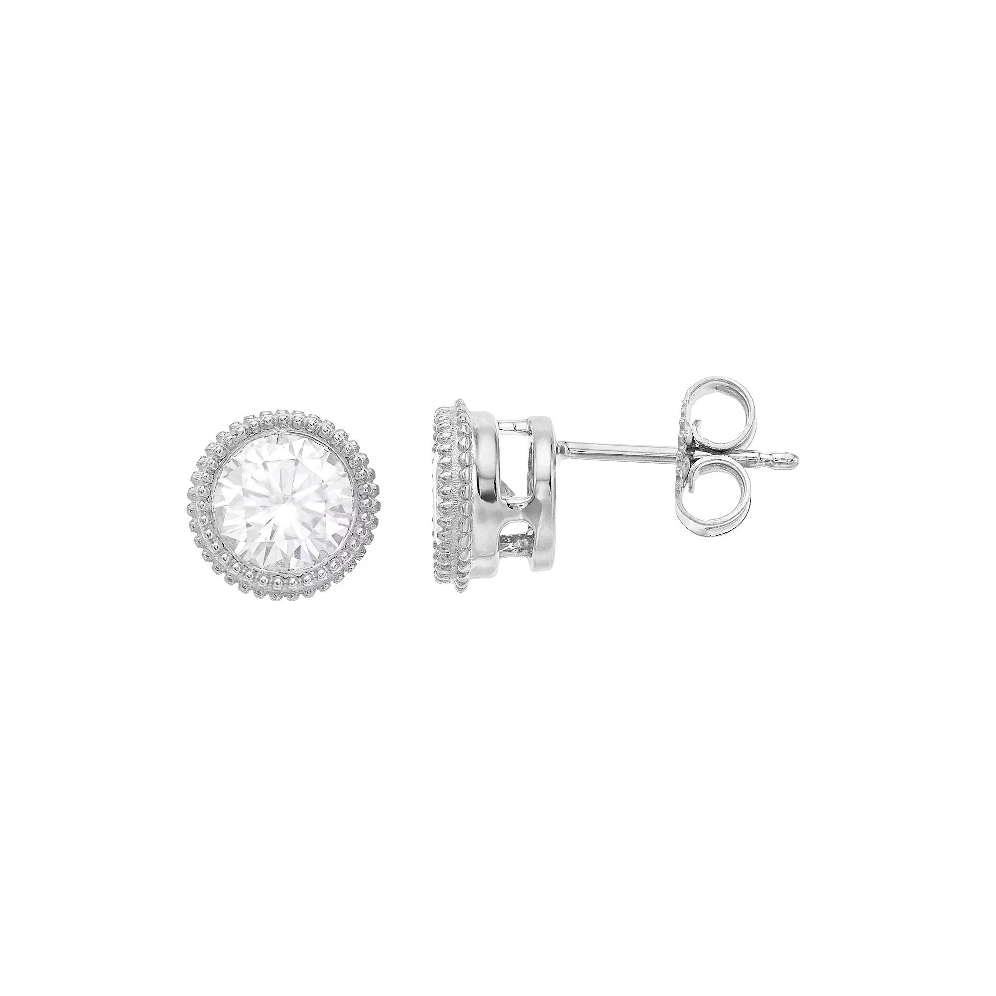 Enhance your favorite attire with these stylish Radiant Fire lab-created moissanite stud earrings. Enhance your favorite attire with these stylish Radiant Fire lab-created moissanite stud earrings. Length: 5.5 mm Backings: post Metal: 14k white gold Plating: rhodium Finish: polished Packaging: boxedSTONE DETAILS Stone type: lab-created moissanite Total weight: 1 1/10 ct. Shape: round brilliant Setting: prong Gemstones may have been treated to enhance their appearance. Special care may be required. Please visit our Gemstone Treatment & Special Care Guide for more information. Diamond equivalent carat (ct.) Total Weight (T.W.) represents the approximate total weight of diamonds of equivalent appearance. Image(s) may be enlarged to show detail. Please note, due to the high value of this item, a signature may be required upon delivery. Size: One Size. Gender: female. Age Group: adult.