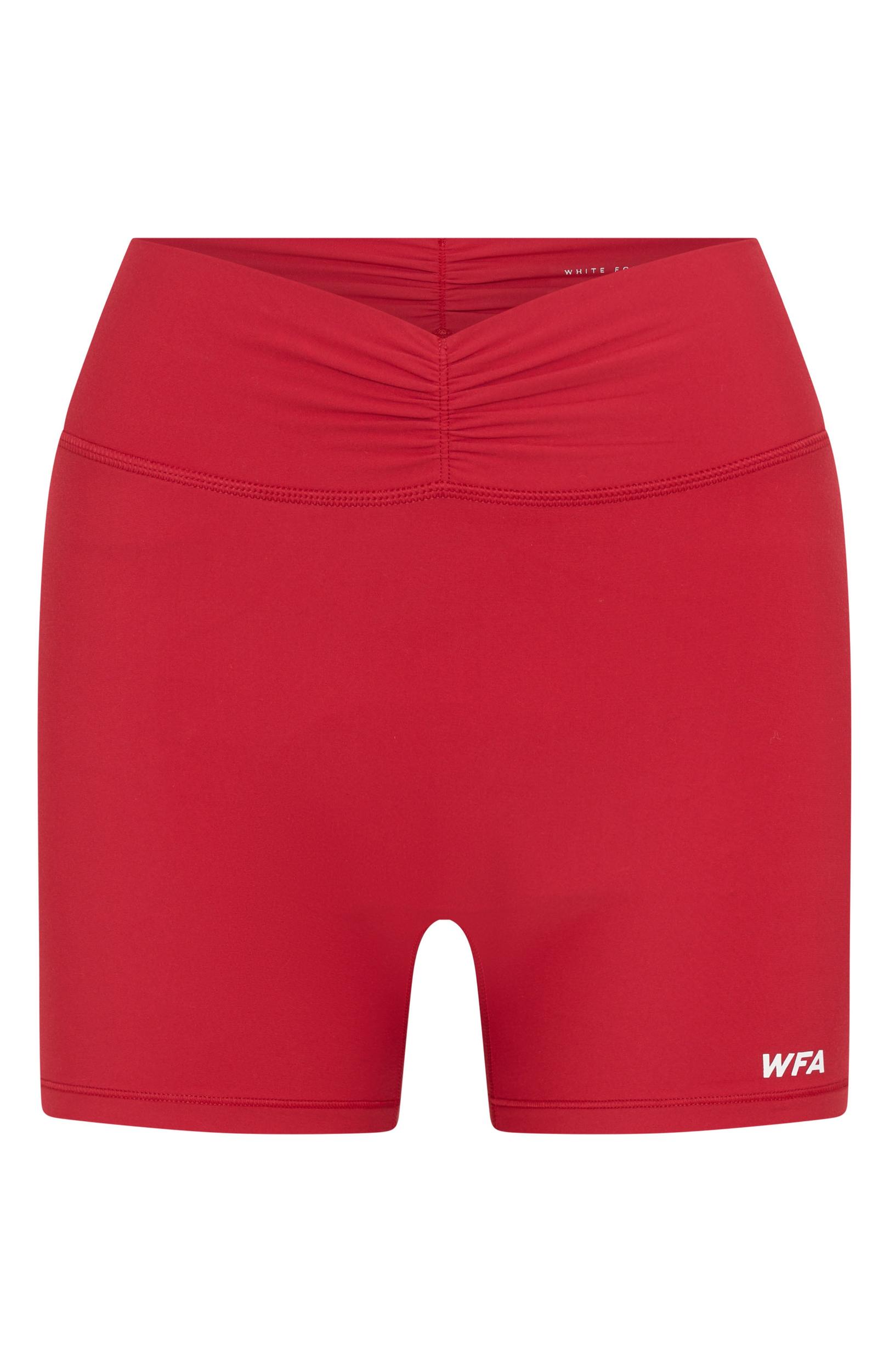 WHITE FOX ACTIVE Stay in motion with the Radiate High Waisted Shorts Cherry Red. Featuring a thick, high-waisted waistband with centre ruching detailing, side front logo design on leg, unlined and soft, buttery stretch material that moves with your body. Team with a Cherry Red crop for the ultimate gym fit! 71% POLYESTER 29% ELASTANE Mik is 171cm & wears an XS