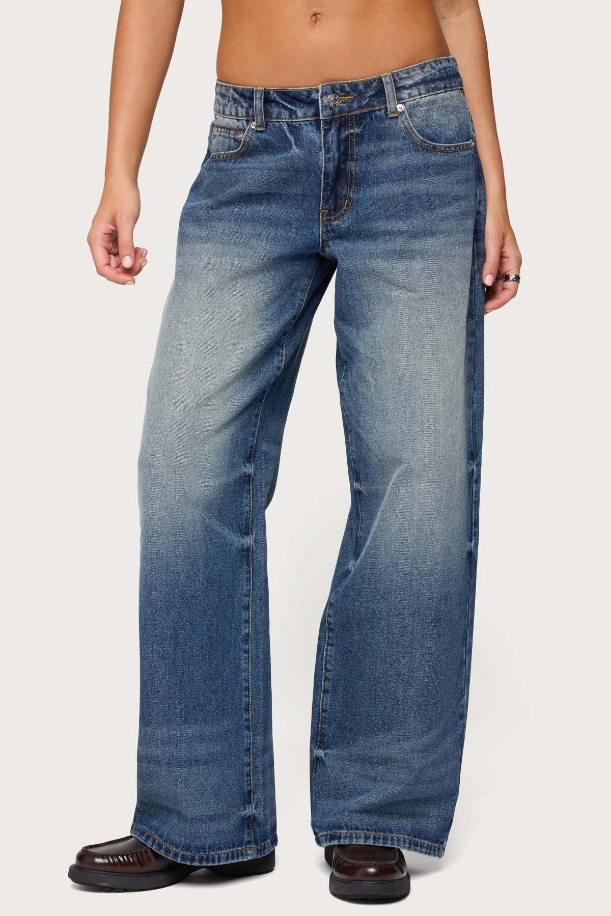 Jeans Low rise waist Baggy fit Washed rigid denim fabric 100% Cotton Model wears size S Inseam of size S (in): 31.5 Model height is 5'8 Item care: Machine wash at maximum 30ºC, do not bleach, tumble dry low, iron at a maximum of 110ºC, do not dry clean