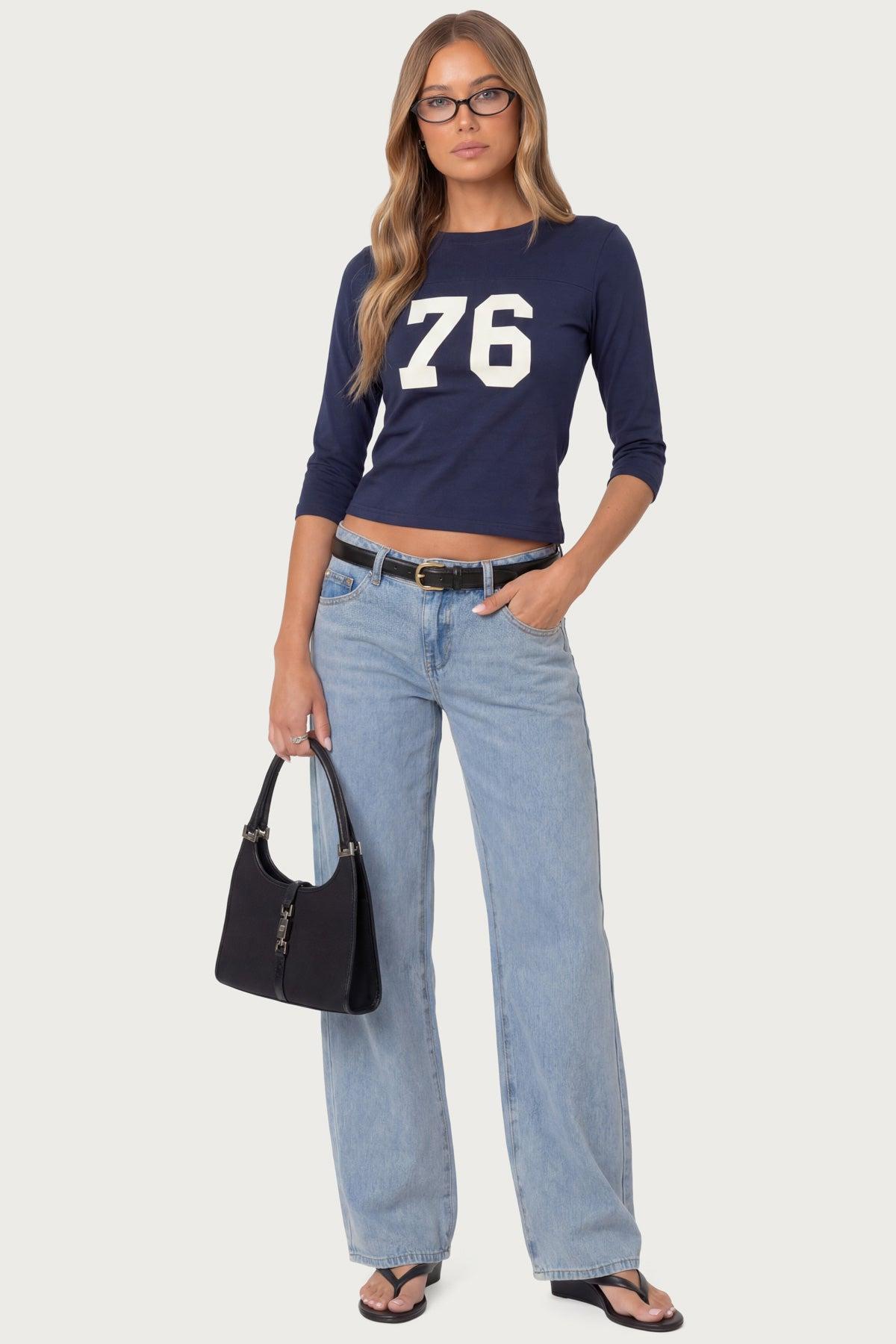 Jeans Low rise waist Loose fit Washed denim fabric 100% Cotton Model wears size S Model height is 5'8 Item care: Wash with similar color For Petite version click HERE