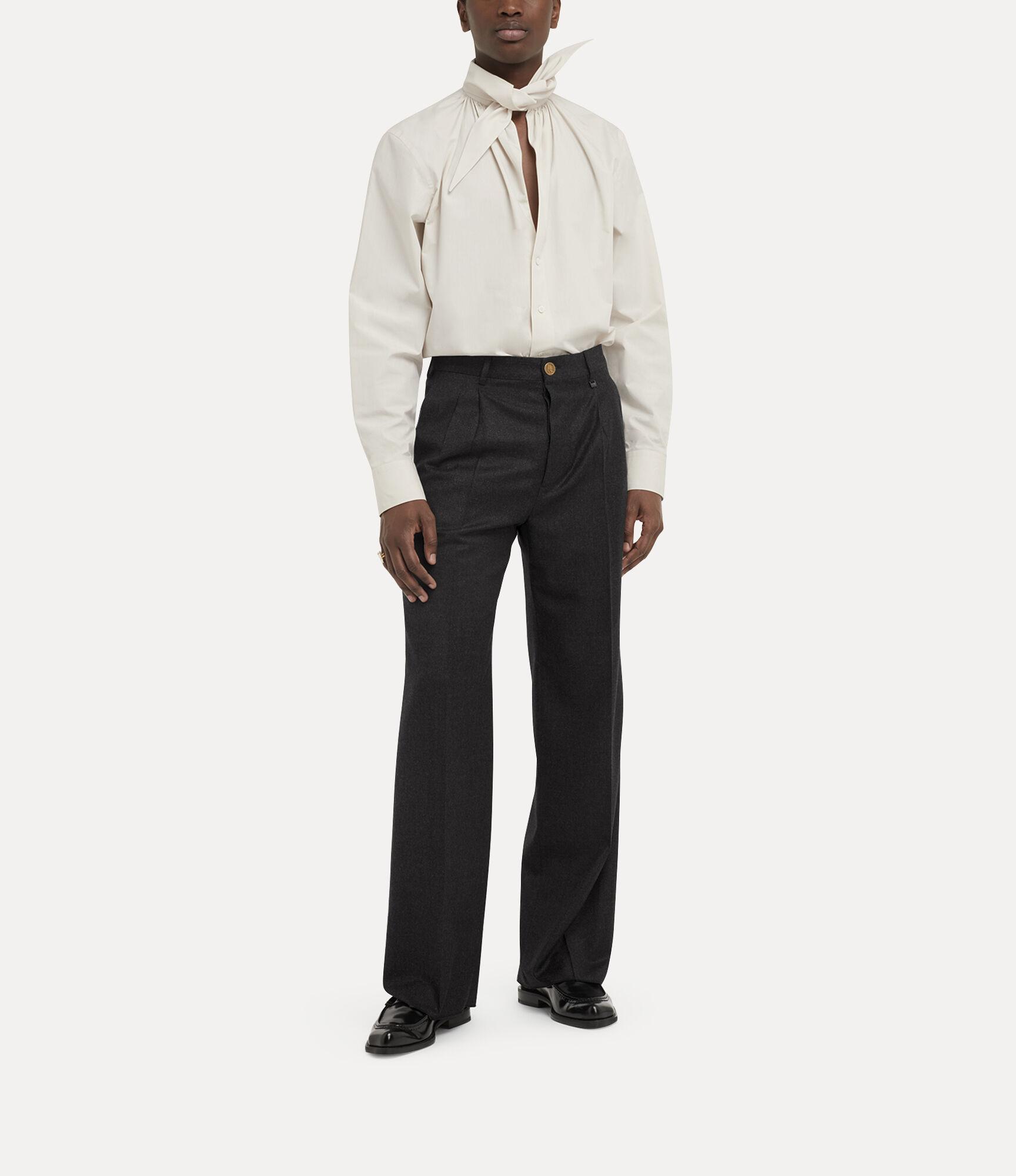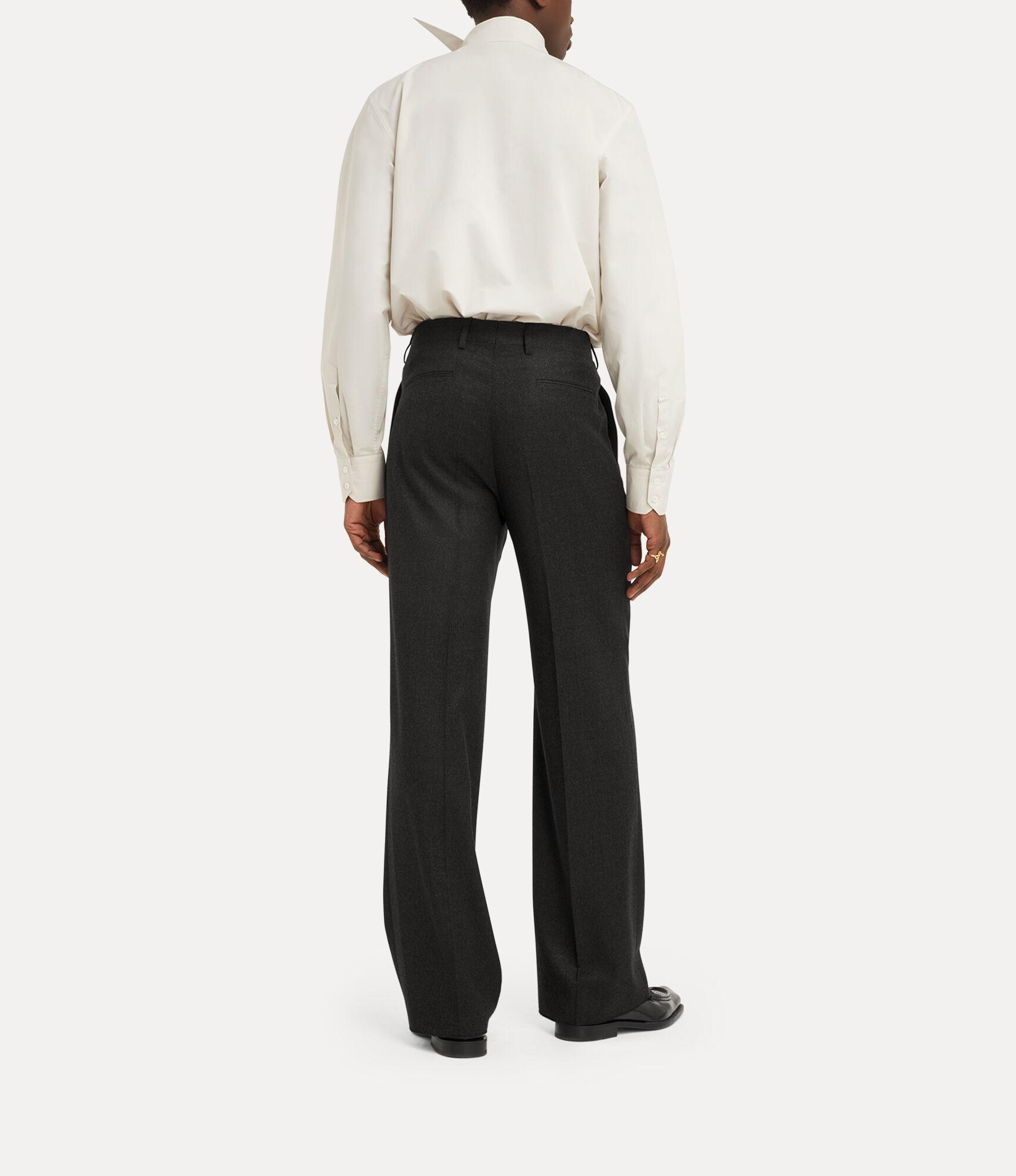 Our Rafael trousers are crafted from soft wool, delicately woven with a brushed metallic finish. Cut with a classic high-rise waistband and framed by belt loops, the silhouette falls into a fluid wide leg, defined by sharp pressed pleat details.