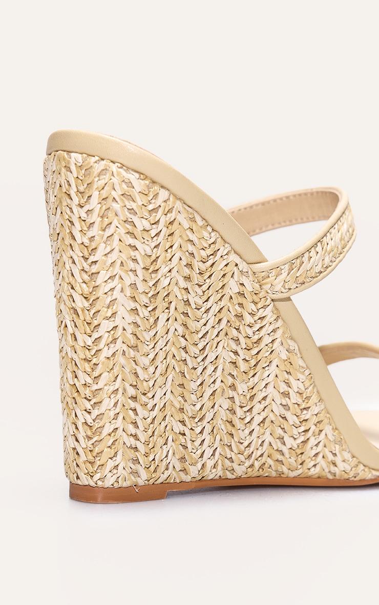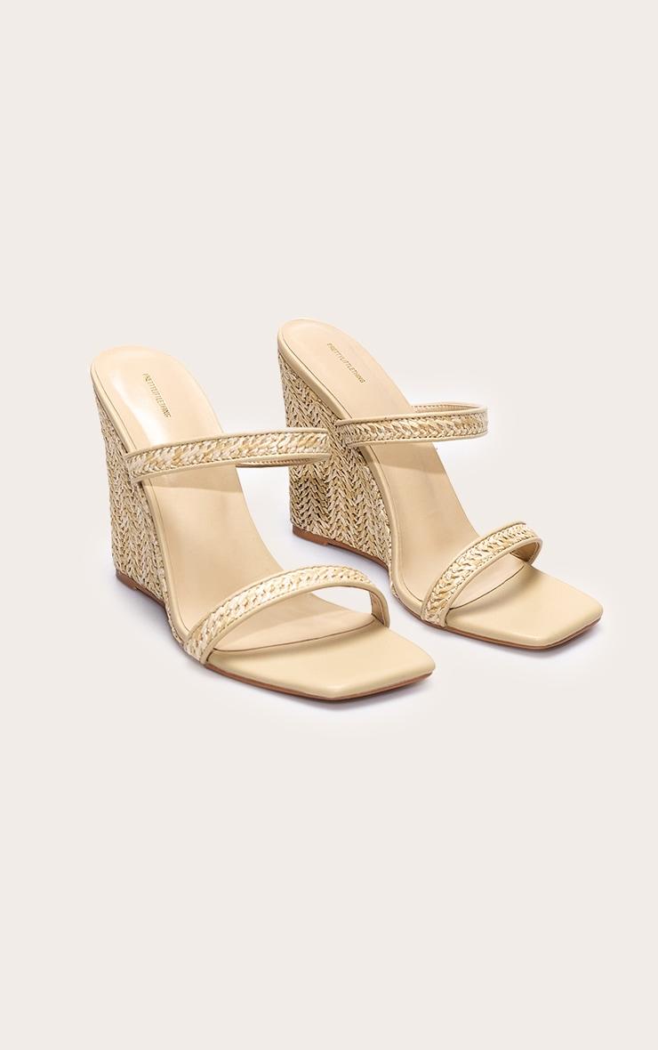 Made from a raffia material with a square toe design, a 4 inch heel and a flattering mule fit. Pair these raffia square toe high heeled mule wedges with your favorite outfit of the day to take any look from 0-100 instantly.p]:!mb-4inch>Brand: PrettyLittleThingCategory: FootwearProduct type: WedgesColor: BeigeOccasion: Evening