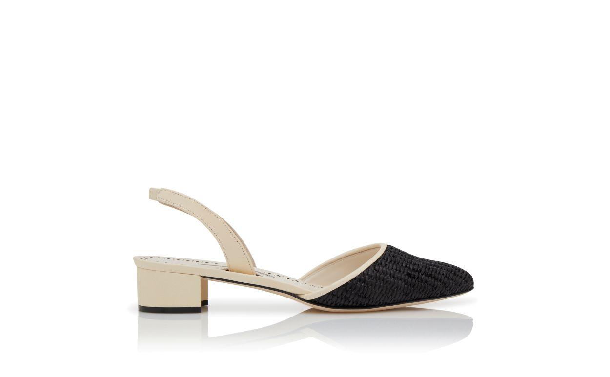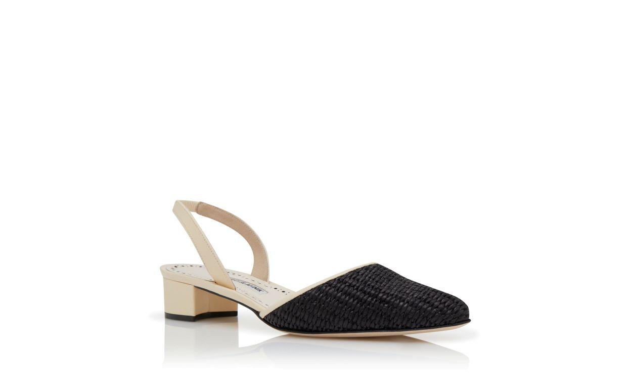 RAFFRO Cream and Black Raffia Slingback Pumps