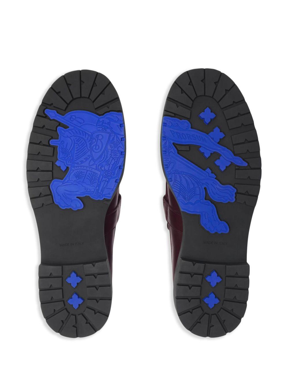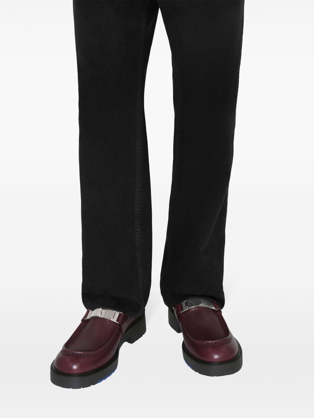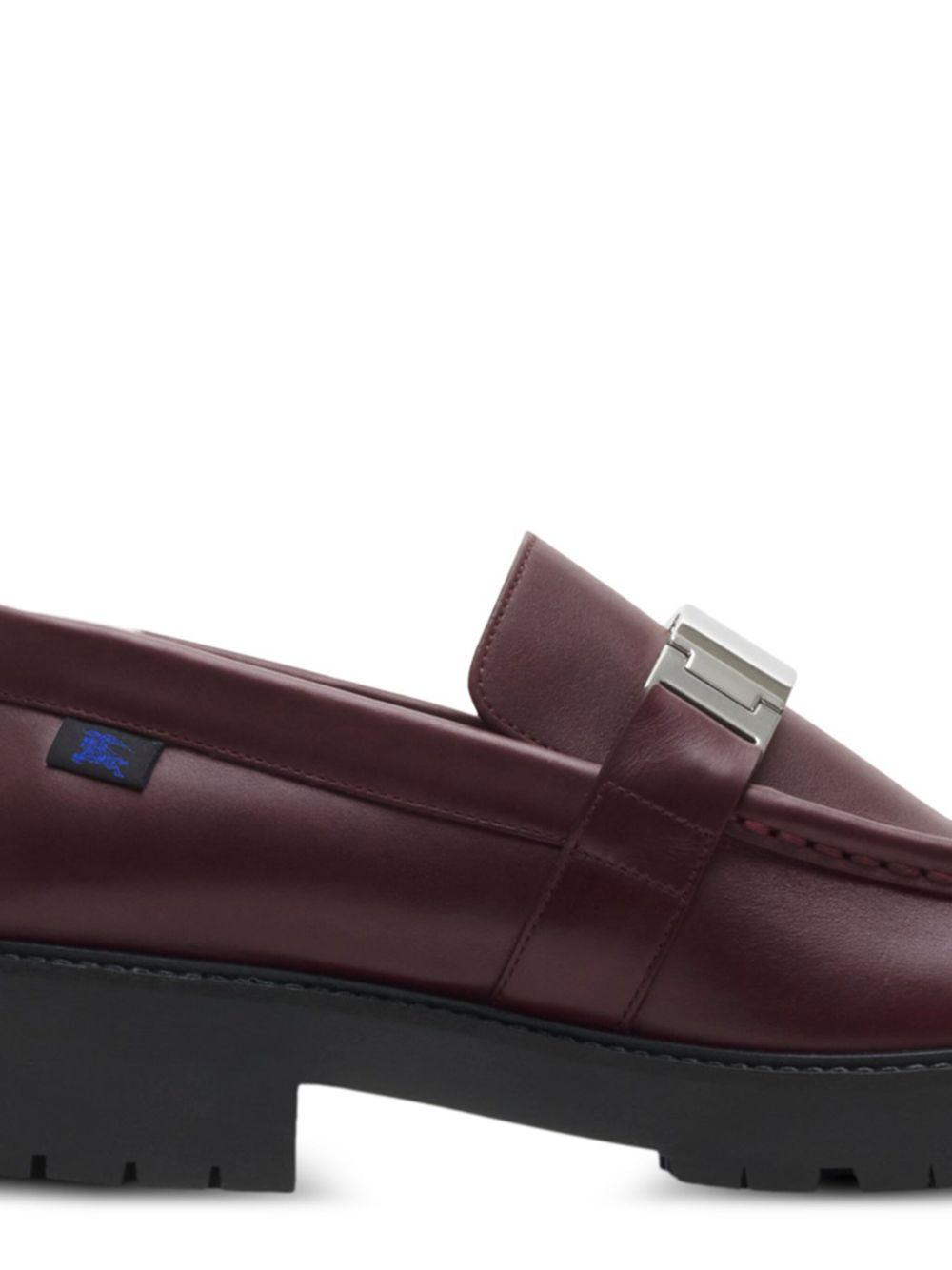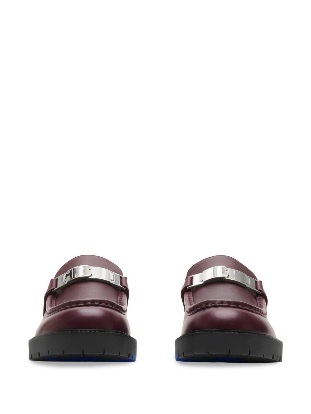 Burberry Raft loafers | Red | dark red | calf leather | smooth grain | mini logo tag | silver-tone logo plaque | moc stitching | almond toe | branded insole | ridged rubber sole | Calf Leather/Polyester/Polyurethane/Calf Leather/Thermoplastic Polyurethane (TPU)/Calf Leather | Loafers | Shoes | Men