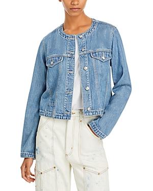 The Cora jacket from rag & bone is crafted of featherweight denim and features a collarless round-neck design. Seamed detailing and silvertone hardware complete the look. Round neck Long sleeves Chest flap pockets Button-front closure 61% cotton/39% Tencel Machine wash Imported SIZE & FIT About 20.75 from shoulder to hem Model measurements: 510 tall Model is wearing a US size Small ABOUT THE BRAND In 2002, rag & bone founder Marcus Wainwright combined his British heritage with a downtown-New York aesthetic to set the tone for the label. At the heart of the edgy-yet-laid-back brand is its focus on quality craftsmanship and attention to detail. The epitome of cool, off-duty style, its no wonder the signature second-skin denim is favored by many. Contemporary Sportswear - Denim And Bottoms > Rag & Bone > Saks Fifth Avenue > Barneys. rag & bone. Color: Beverlys. Size: Small.