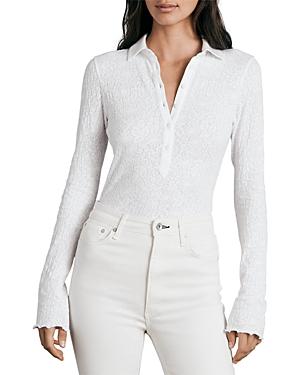 Finished in a lace-inspired jacquard, rag & bones Gemma long-sleeve polo showcases a classic collar and button placket. This traditional design is updated with whimsical lettuce-edge trims. Polo collar Long sleeves Lettuce trim Button-front placket 87% cotton/13% nylon Machine wash Made in Portugal SIZE & FIT About 25.25 from shoulder to hem Bust, about 31.25 Model measurements: 510 tall Model is wearing a US size Small ABOUT THE BRAND In 2002, rag & bone founder Marcus Wainwright combined his British heritage with a downtown-New York aesthetic to set the tone for the label. At the heart of the edgy-yet-laid-back brand is its focus on quality craftsmanship and attention to detail. The epitome of cool, off-duty style, its no wonder the signature second-skin denim is favored by many. Contemporary Sportswear - Rag And Bone > Rag & Bone > Saks Fifth Avenue > Barneys. rag & bone. Color: Black. Size: Large.