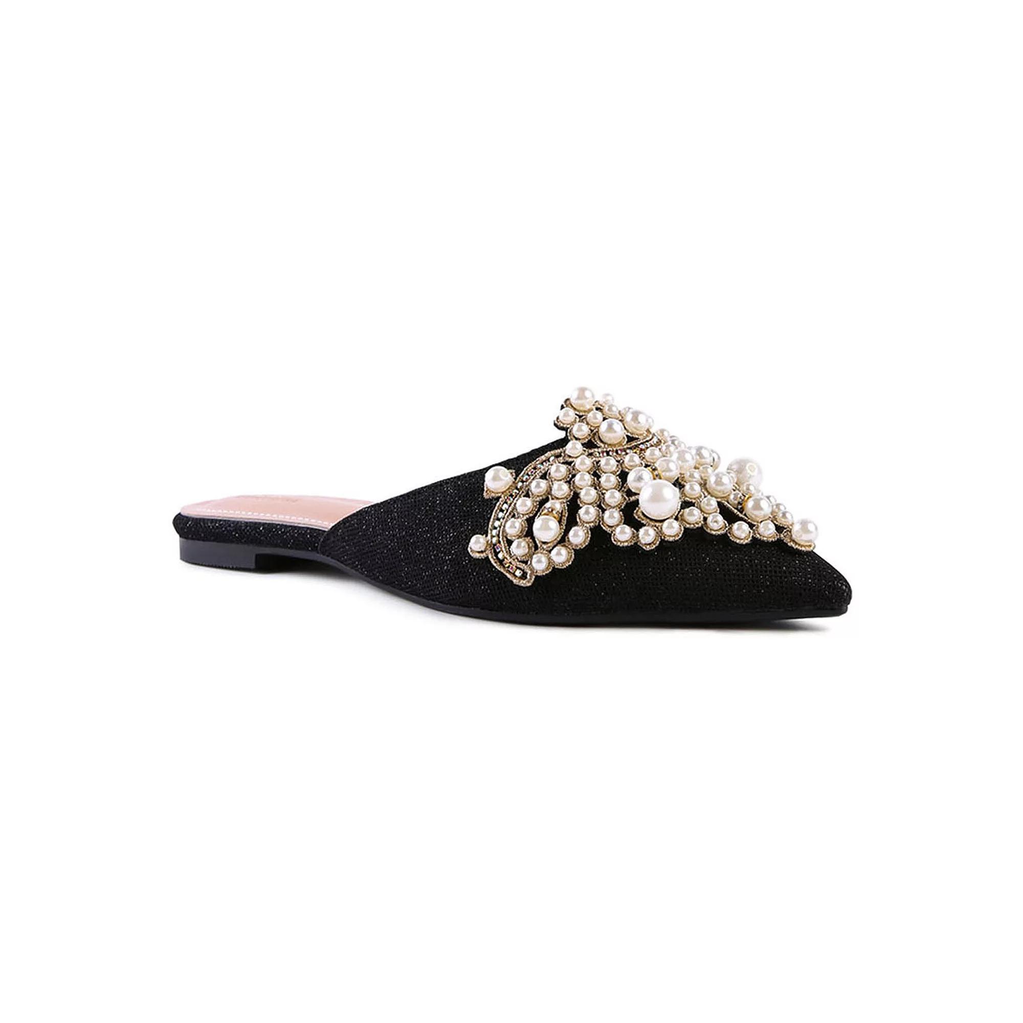 Delicate craftsmanship and precious detailing make the Rag & Co Astre mule stand out. This pointed toe mule made using fabric is topped with pearl accents that exhibits an inviting look. Cushioned footbed offers shock-absorption, while the anti-slip rubber sole offers supportive footing.