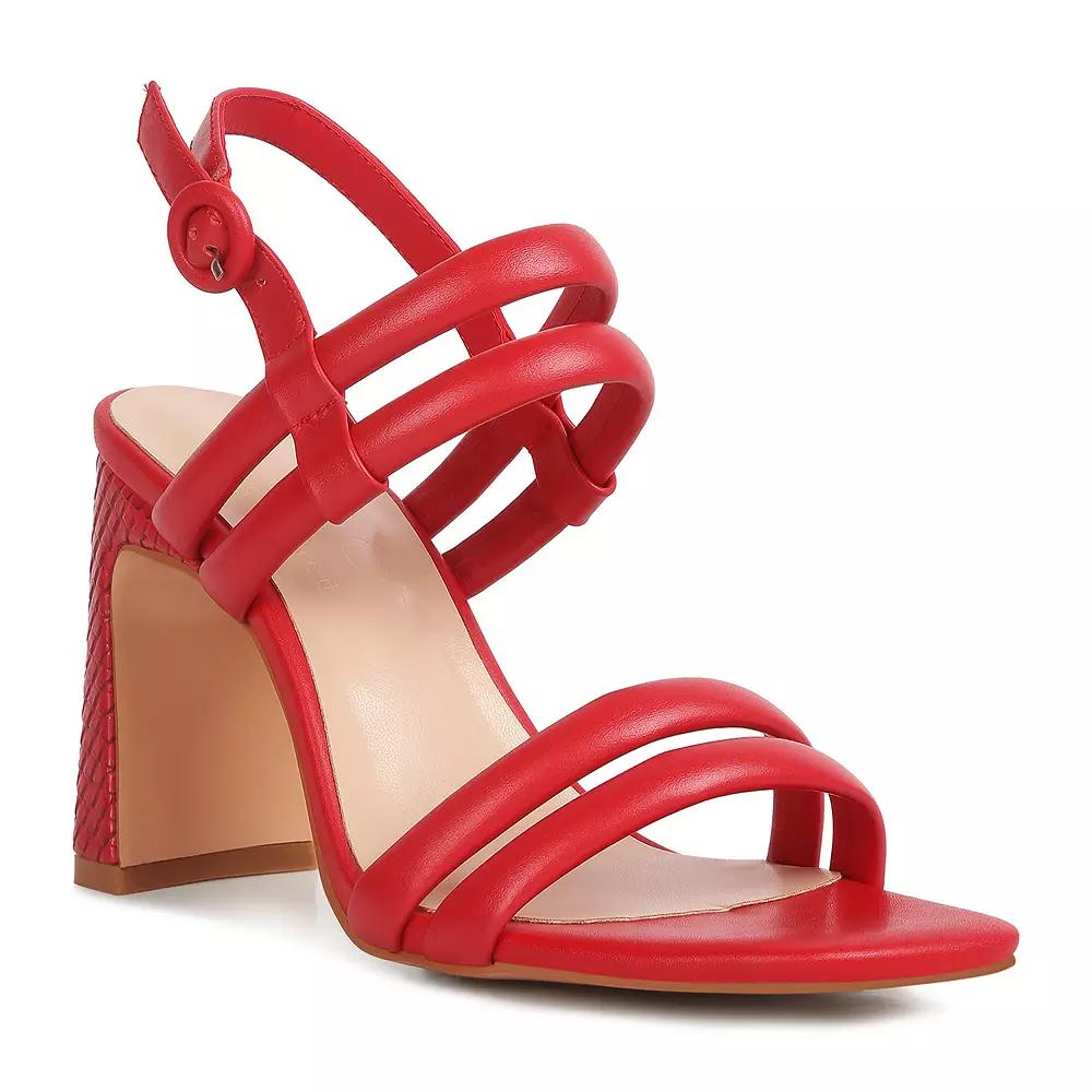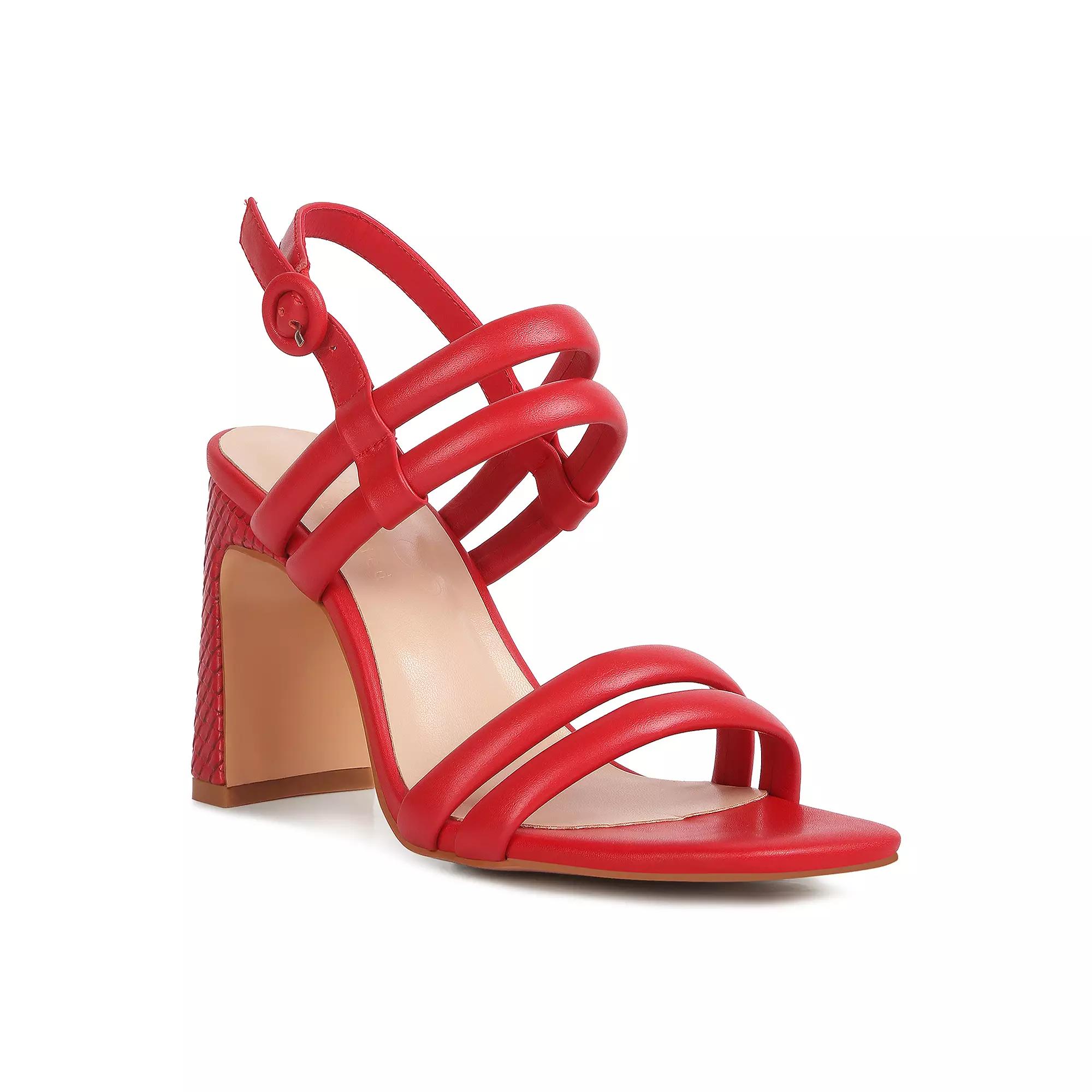 Upgrade your favorite outfits with these Rag & Co Avianna slim block heel leather sandals. Click this FOOTWEAR GUIDE to find the perfect fit and more! - https://www.kohls.com/feature/shoesizeguide.jsp. FEATURES: Strappy design, Slim block heel, Ankle buckle closure for a secure fit. DETAILS: Leather upper, lining and midsole, Rubber outsole, Square toe, Buckle closure, Leather footbed, Slip-resistant sole, 3.55-in. heel height, 0.39-in. platform height, Spot clean, Imported. Color: Red. Gender: female. Age Group: adult. Material: SYNTHETIC.