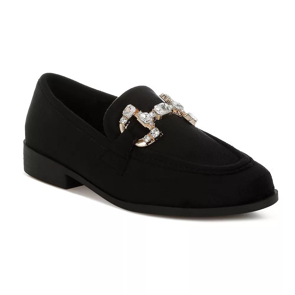 Step into style with these womens Rag & Co. chain detail loafers.Click this FOOTWEAR GUIDE to find the perfect fit and more! Step into style with these womens Rag & Co. chain detail loafers.Click this FOOTWEAR GUIDE to find the perfect fit and more! FEATURES Comfortable fit Metallic simulated crystal accentDETAILS Microfiber upper Polyurethane lining Polyurethane midsole TPR outsole Round toe Slip-on Polyurethane footbed Slip-resistant outsole 0.75-in. heel Spot clean Imported Size: 5. Color: Black. Gender: female. Age Group: adult.