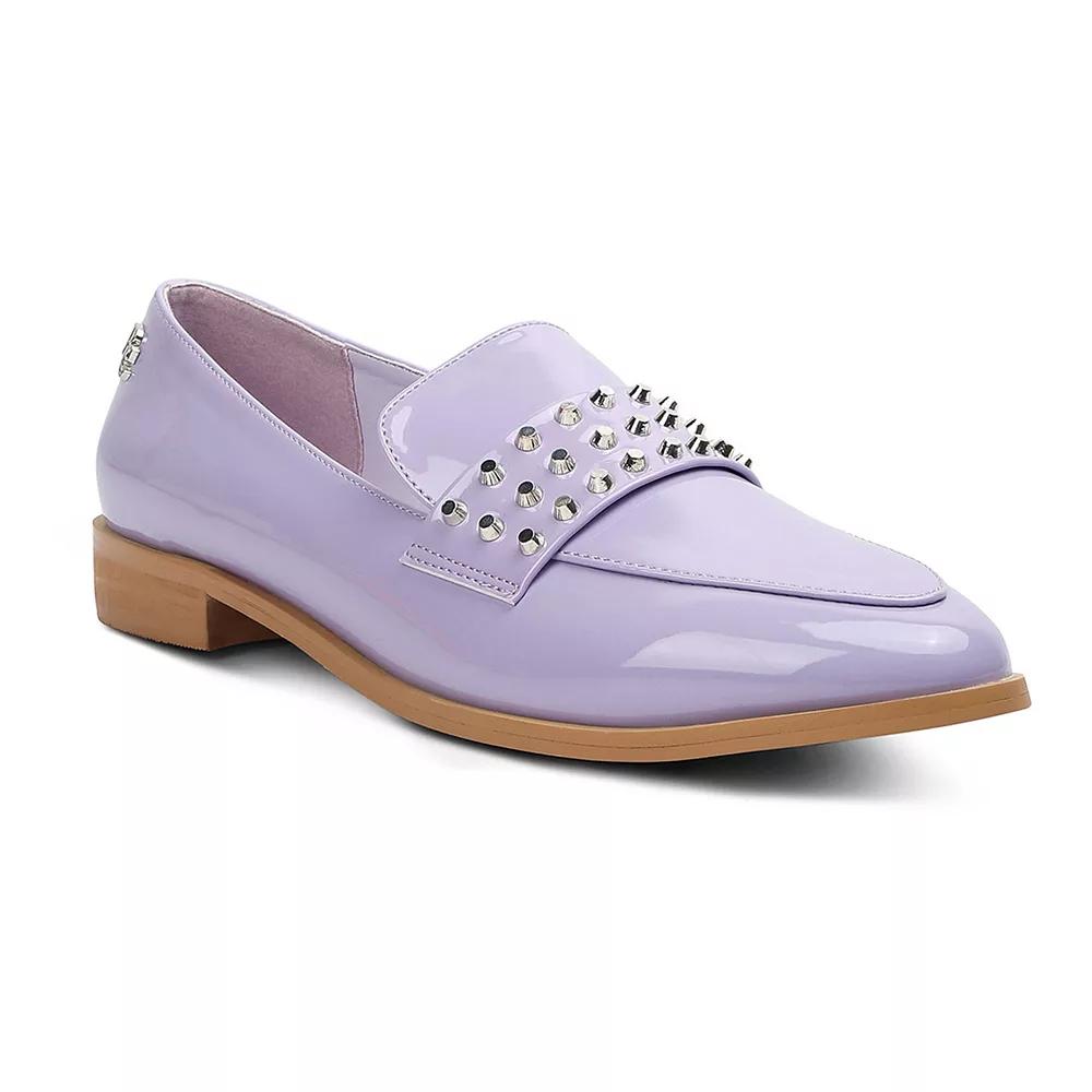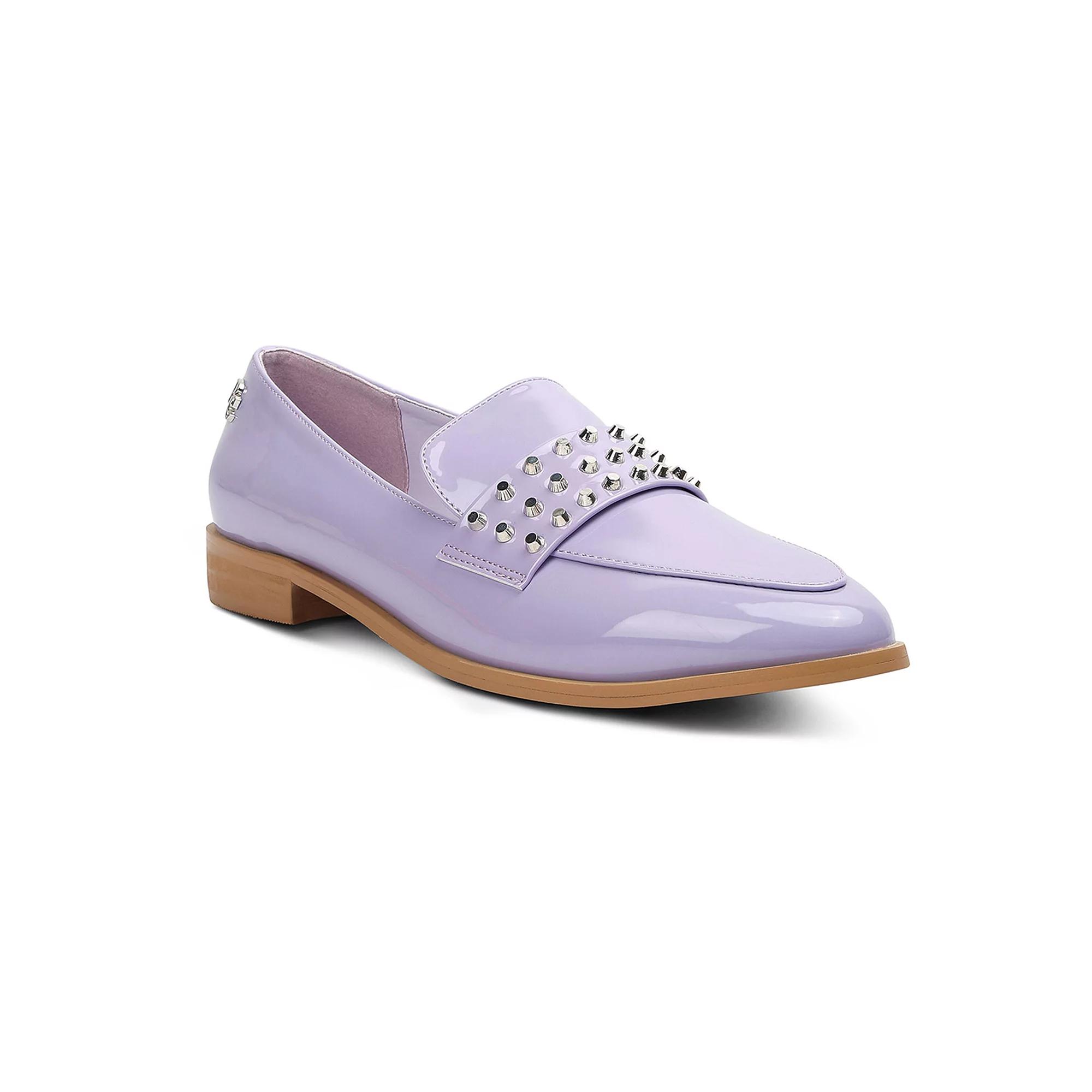 Add a little edge to your everyday looks with these Rag & Co women's loafers. Click this FOOTWEAR GUIDE to find the perfect fit and more! - https://www.kohls.com/feature/shoesizeguide.jsp. FEATURES: Stud details, Shiny faux-patent leather, Low block heel. DETAILS: Polyurethane upper, lining and midsole, TPR outsole, Almond toe, Slip-on, Polyurethane footbed, Slip-resistant outsole, 0.39-in. heel, Spot clean, Imported. Size: 9. Color: Lilac. Gender: female. Age Group: adult. Material: SYNTHETIC.