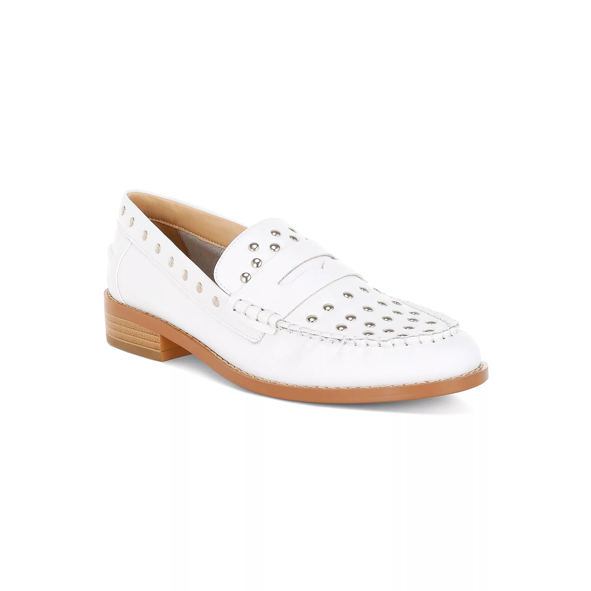 Step into style with these Rag & Co Oglavia women's loafers. Click this FOOTWEAR GUIDE to find the perfect fit and more! - https://www.kohls.com/feature/shoesizeguide.jsp. FEATURES: Comfortable, Studded design. DETAILS: Leather upper, lining & midsole, TPR outsole, Round toe, Slip-on, Leather footbed, Slip-resistant outsole, 0.75-in. heel, Spot clean, Imported. Size: 8.5. Color: White. Gender: female. Age Group: adult.