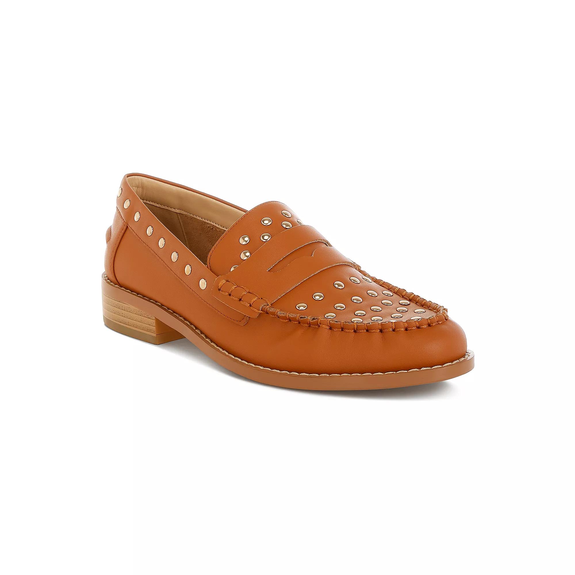 Step into style with these Rag & Co Oglavia women's loafers. Click this FOOTWEAR GUIDE to find the perfect fit and more! - https://www.kohls.com/feature/shoesizeguide.jsp. FEATURES: Comfortable, Studded design. DETAILS: Leather upper, lining & midsole, TPR outsole, Round toe, Slip-on, Leather footbed, Slip-resistant outsole, 0.75-in. heel, Spot clean, Imported. Size: 8.5. Gender: female. Age Group: adult.