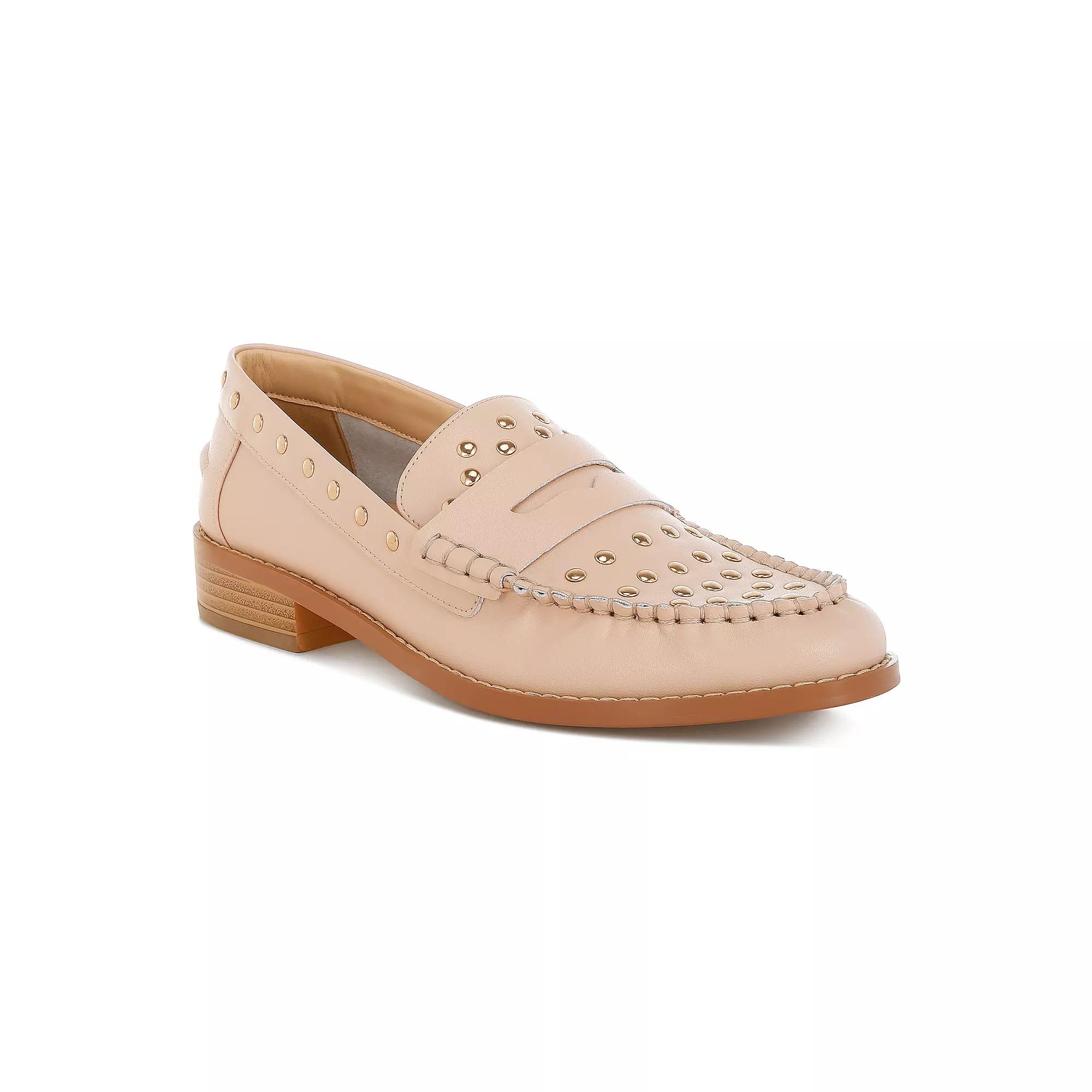 Step into style with these Rag & Co Oglavia women's loafers. Click this FOOTWEAR GUIDE to find the perfect fit and more! - https://www.kohls.com/feature/shoesizeguide.jsp. FEATURES: Comfortable, Studded design. DETAILS: Leather upper, lining & midsole, TPR outsole, Round toe, Slip-on, Leather footbed, Slip-resistant outsole, 0.75-in. heel, Spot clean, Imported. Size: 10. Color: Beige. Gender: female. Age Group: adult.