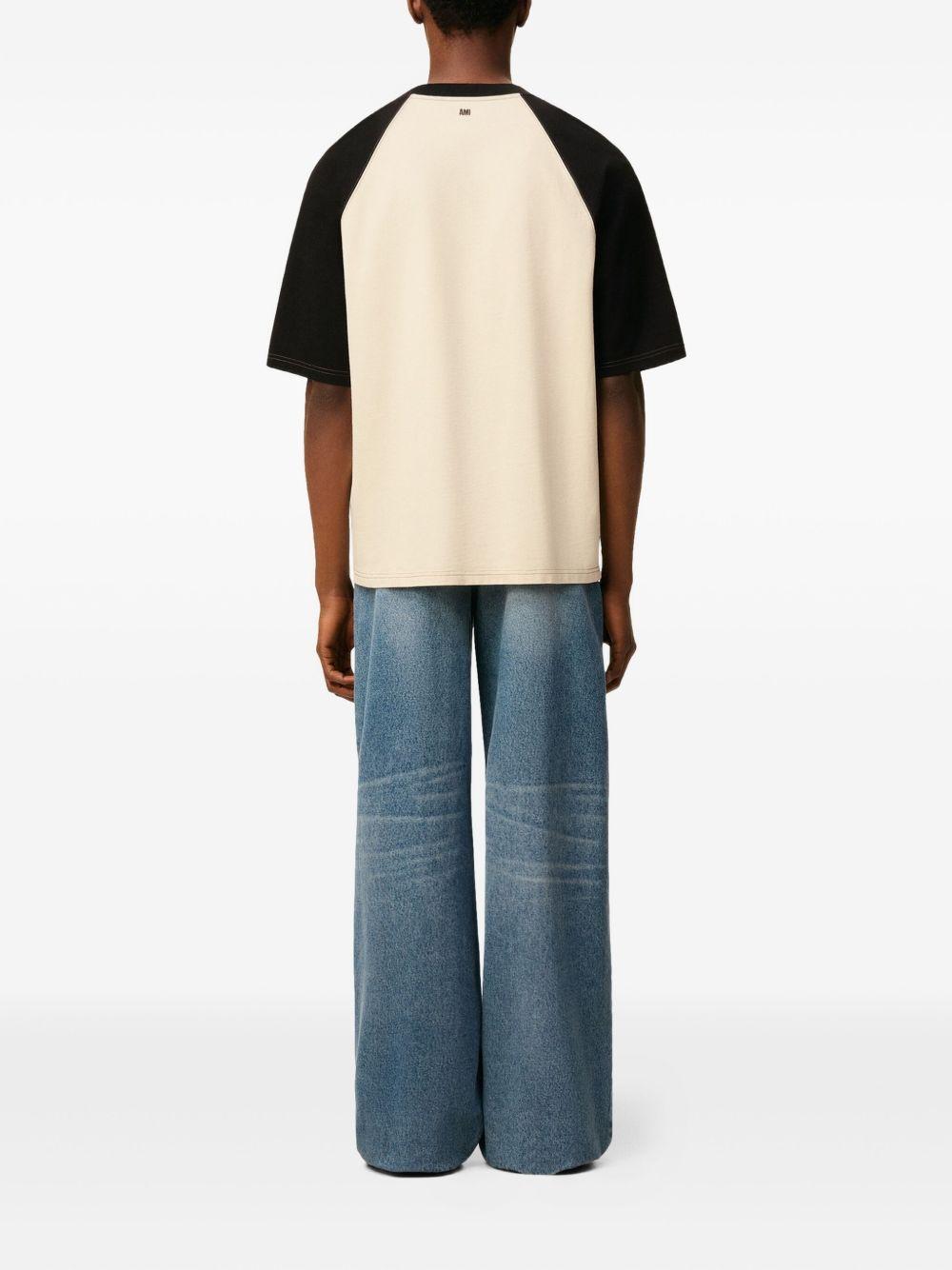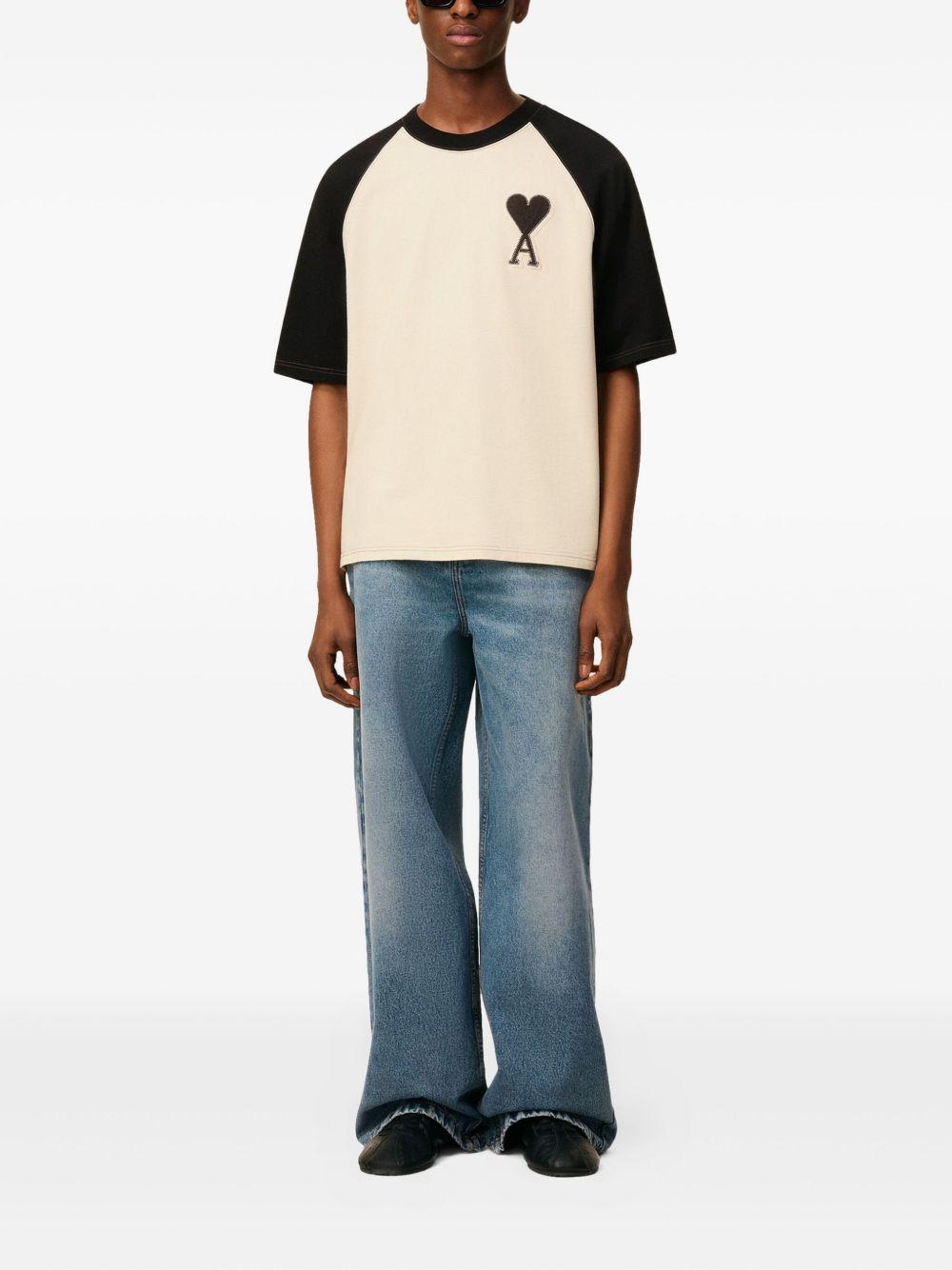 AMI Paris raglan-sleeve Ami de Coeur-motif T-shirt | Black | off-white | raglan sleeves | Ami de Coeur-motif | cotton | tonal embroidery | Cotton | T-Shirts & Jersey Shirts | Tops | Clothing | Women | T-Shirts | T-Shirts & Vests | Clothing | Men