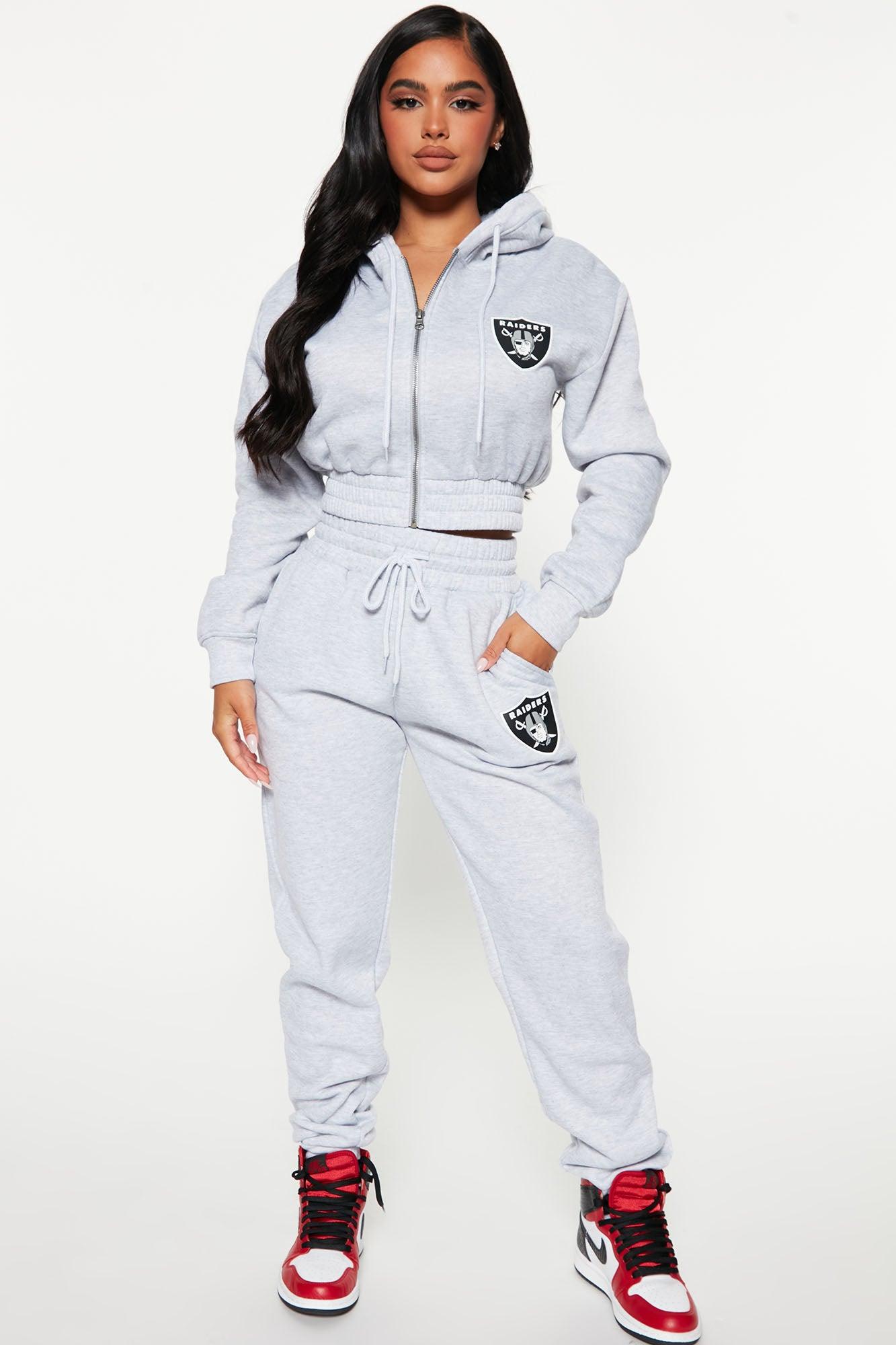 Available In Heather Grey. Hooded Zip Front Cropped Long Sleeve Pair Back To "Raiders Set Up Jogger" Disclaimer: Due To The Printing Process A Difference In Saturation May Occur. Each Garment Is Unique Shell: 100% Polyester Lining: 100% Polyester Imported