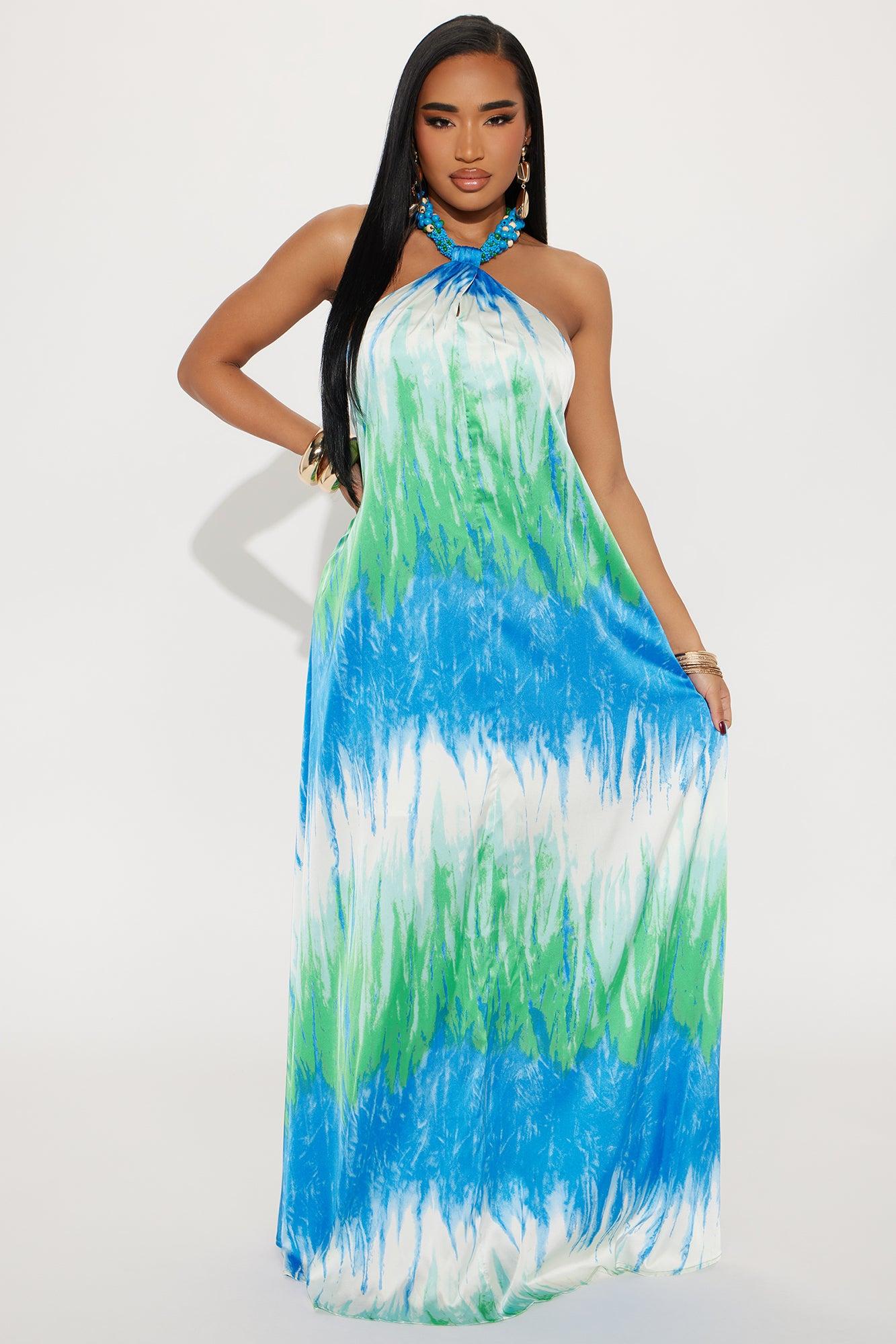 Raina Satin Backless Maxi Dress - Blue/combo