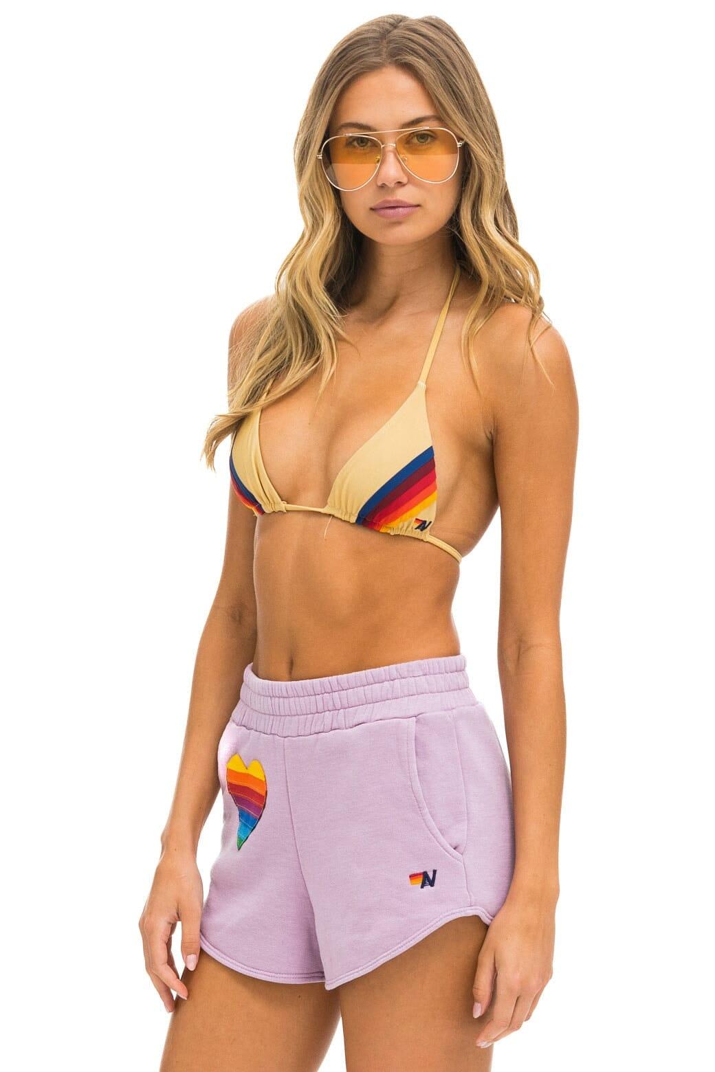 The most comfortable shorts you'll ever own. Our single needle stitch work gives each garment a unique, one of a kind effect. All of our products go through an intense breaking-down process that gives them a vintage feel you'll love because it's broken in from day one of wearing it. You're going to live in this shorts. Model is wearing size XS Hand sewn in our own factory in the heart of Los Angeles Tri-Blend Fabric: 50% polyester, 38% cotton, 12% rayon Machine wash cold with like colors. Hang or tumble dry on low.