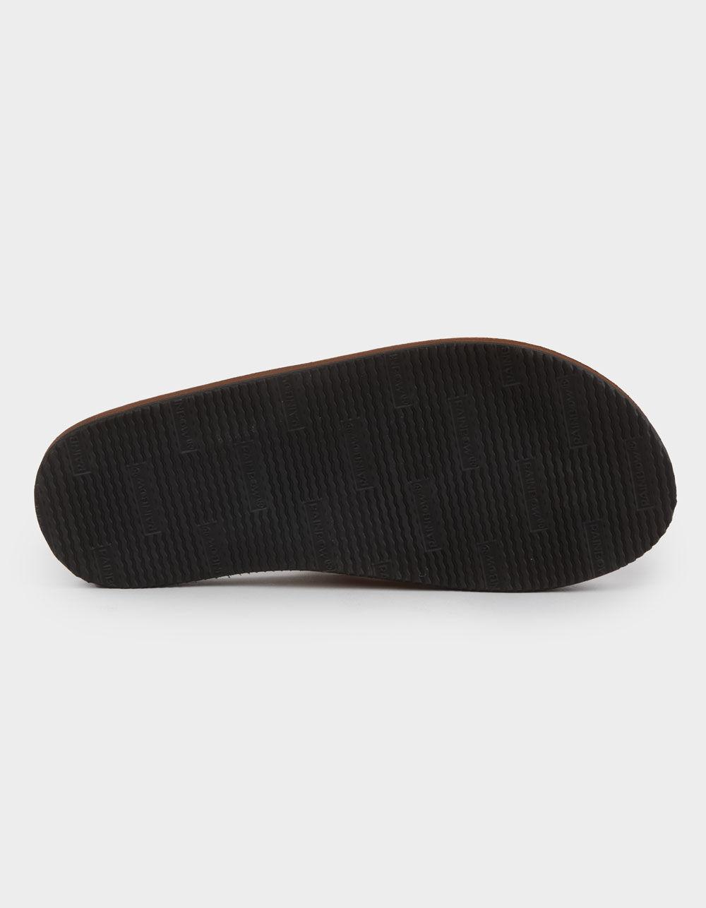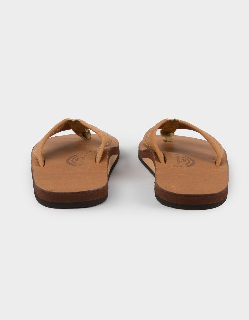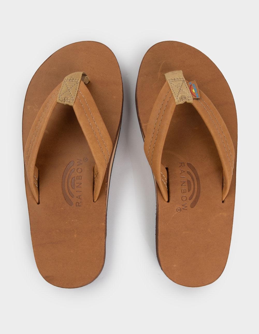 Rainbow Single Layer Luxury Leather Flip Flops. The newest single layer design in Rainbow's product line. Be the first to get your feet into The Single Layer Luxury Leather. This beautiful Luxury Leather design comes with the traditional 1" straps starting at the box X toe piece fit to the top sole for comfort and functionality! The best feature of this new line is that there is virtually zero break in process. Luxury leather. 1" straps. Easy break in. Single layer arch. Distressed luxury leather. Uniquely distressed surfaces. Anilina Wax finishing process. Increased softness. Nylon toe piece. Box X toe construction. Bonded Nylon thread. Non-Slip Rainbow® Bottom. Original Rainbow® woven label. Lifetime Rainbow® guarantee. Imported.