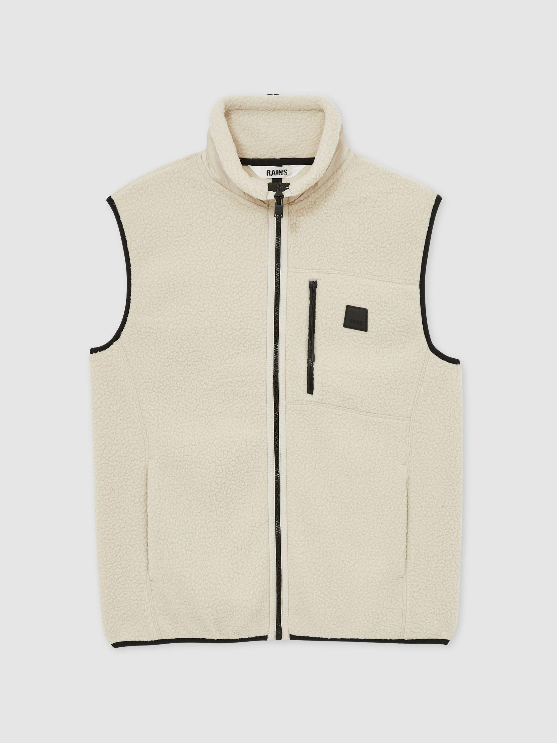 The Yermo gilet is crafted from heavyweight fleece for optimal warmth and reinforced with durable nylon-ripstop panels for extra durability. Featuring a stand-up collar and a secure zippered chest pocket, it’s a versatile, sporty layer that offers light protection across changing seasons. Heavyweight fleece. Nylon ripstop details. Stand-up collar. Logo patch at the chest. Chest zip pocket. Side slip pockets. Front zip. Rains, curated by Reiss, is a collection of outerwear and lifestyle garments with conceptual design details and a neo-Scandinavian aesthetic. The Danish label expertly embodies a balance between function and style.