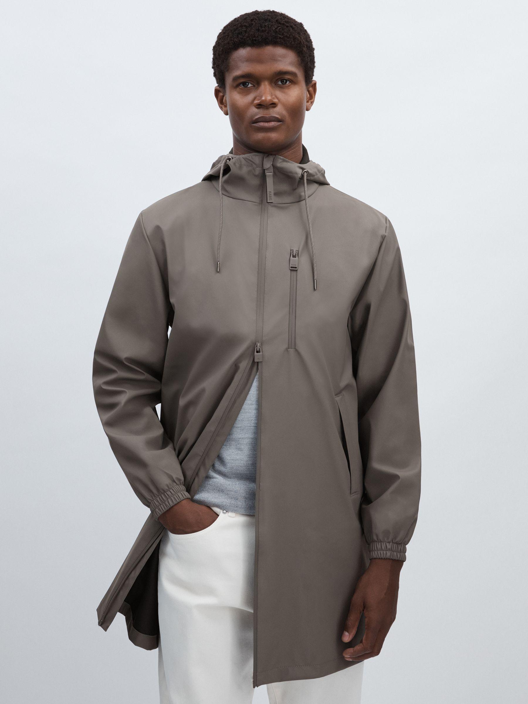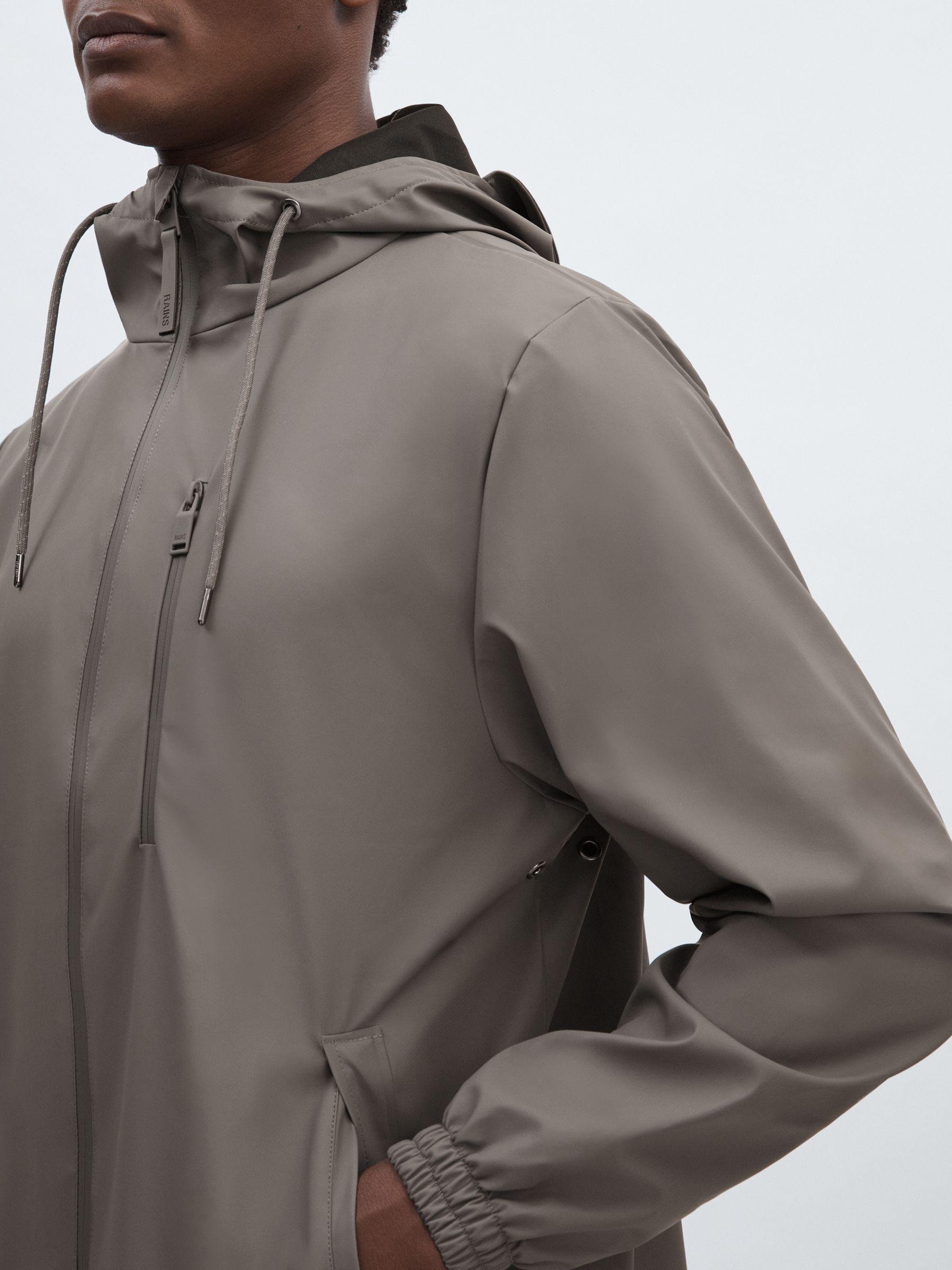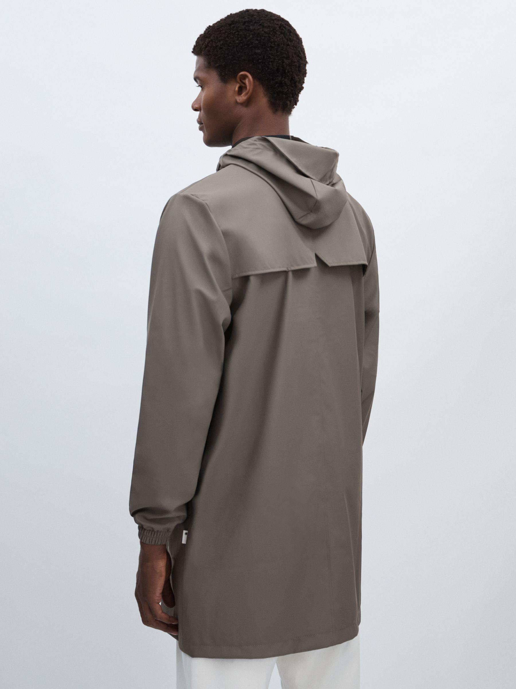 The Long Storm Breaker, crafted from Rains’ signature lightweight PU fabric, is a raincoat that seamlessly blends sporty design with elevated functionality. It boasts practical features such as a two-way waterproof zip and an adjustable drawstring hood with a built-in cap, ensuring optimal protection against the elements. Waterproof signature PU fabric Hood with built-in cap and drawstring Elasticated cuffs Double welded seams and side pockets Zip pocket at chest Two-way waterproof zip Part-reflective drawstring hem Ventilation eyelets under arm Weather resistant hardware Rains, curated by Reiss, is a collection of outerwear and lifestyle garments with conceptual design details and a neo-Scandinavian aesthetic. The Danish label expertly embodies a balance between function and style.