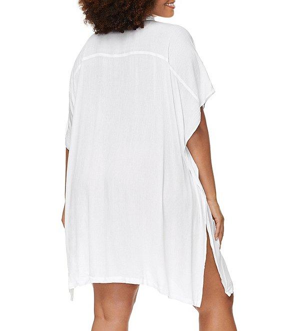 Raisins Curve Plus Size Vacay Point Collar Batwing Sleeve Button Front Swim Cover-Up