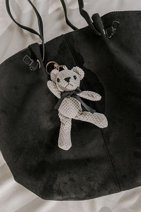 - Whether you're heading to the office, gym, or out for brunch, this bag combines contemporary aesthetics with practical functionality - Detachable Knit Teddy Bear Charm - One zip exterior pocket - One zip and two slip interior pocket - Magnetic clasp closure - Size: 19.7" L x 5.1" W x 13.8" H