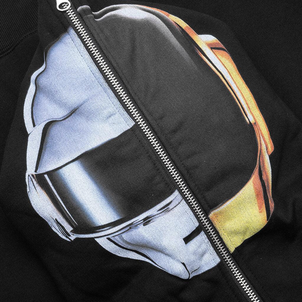 Pleasures pays a tribute to Daft Punk's legacy in their latest collaboration with the Ram Zip Hoodie. Constructed from premium cotton, this hoodie features a full-zip design that extends all the way up to the hood, showcasing the duo's iconic helmets printed on the hood itself. Finished with an embroidered Pleasures logo on the arm and Daft Punk logo on the back. 100% Cotton French Terry Heavyweight, 400 gsm Full-zip closure to hood 2-way zipper Printed Daft Punk helmet graphics Embroidered logos Kangaroo pocket Ribbed trims Style No: P25DP014-BLACK P25DP014 BLAC