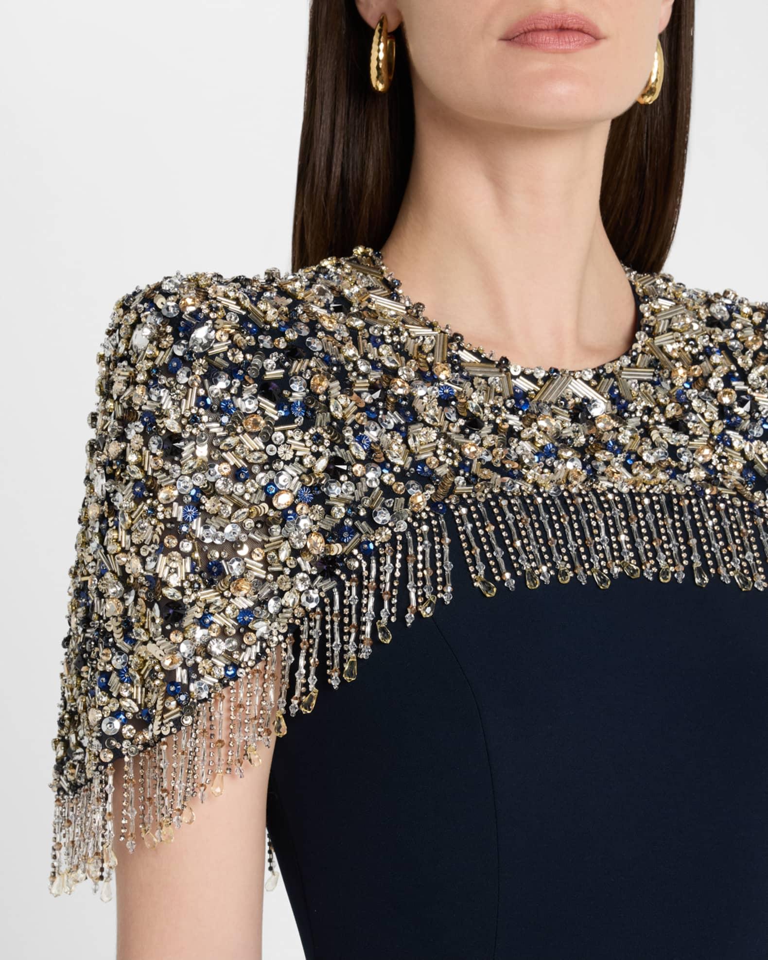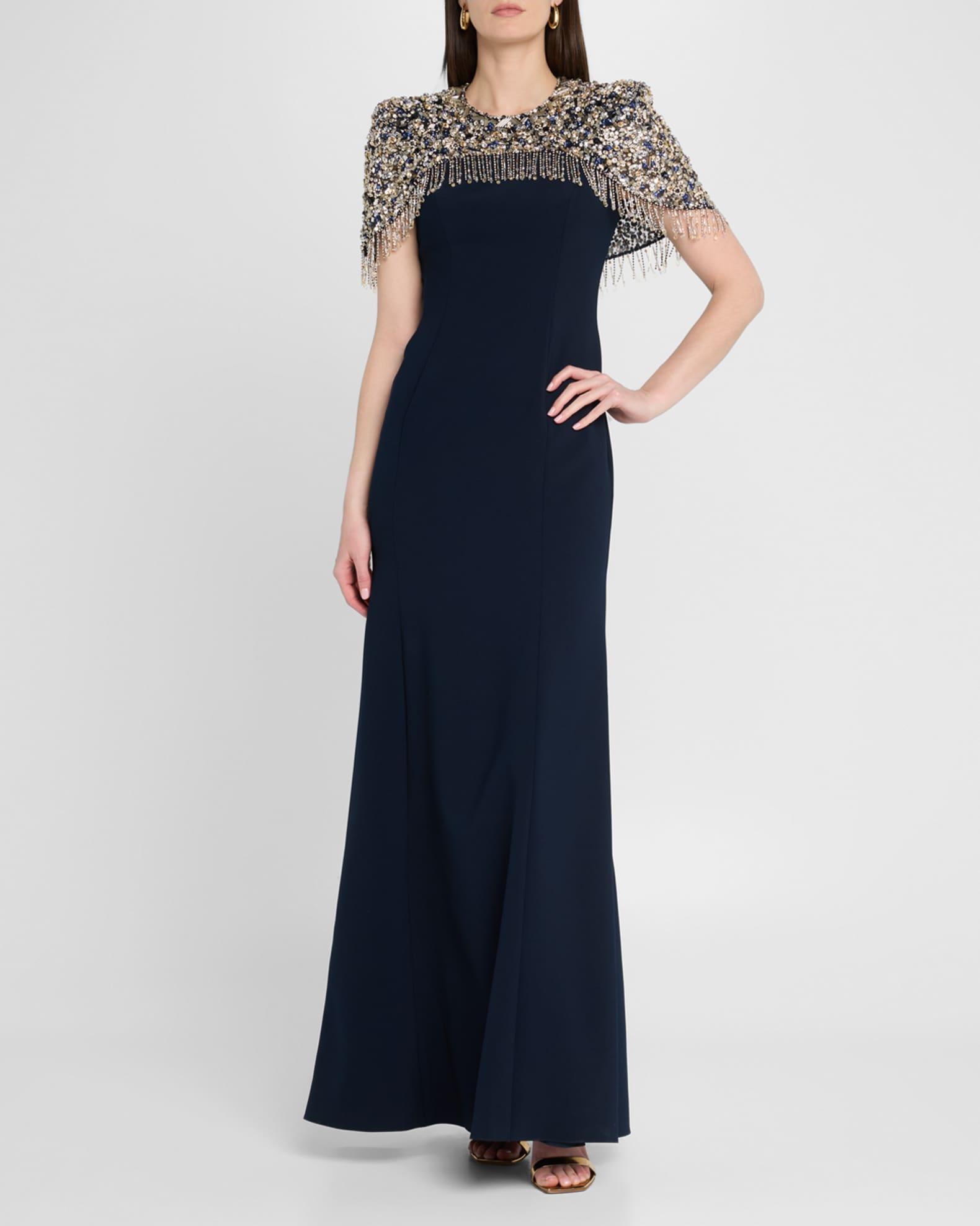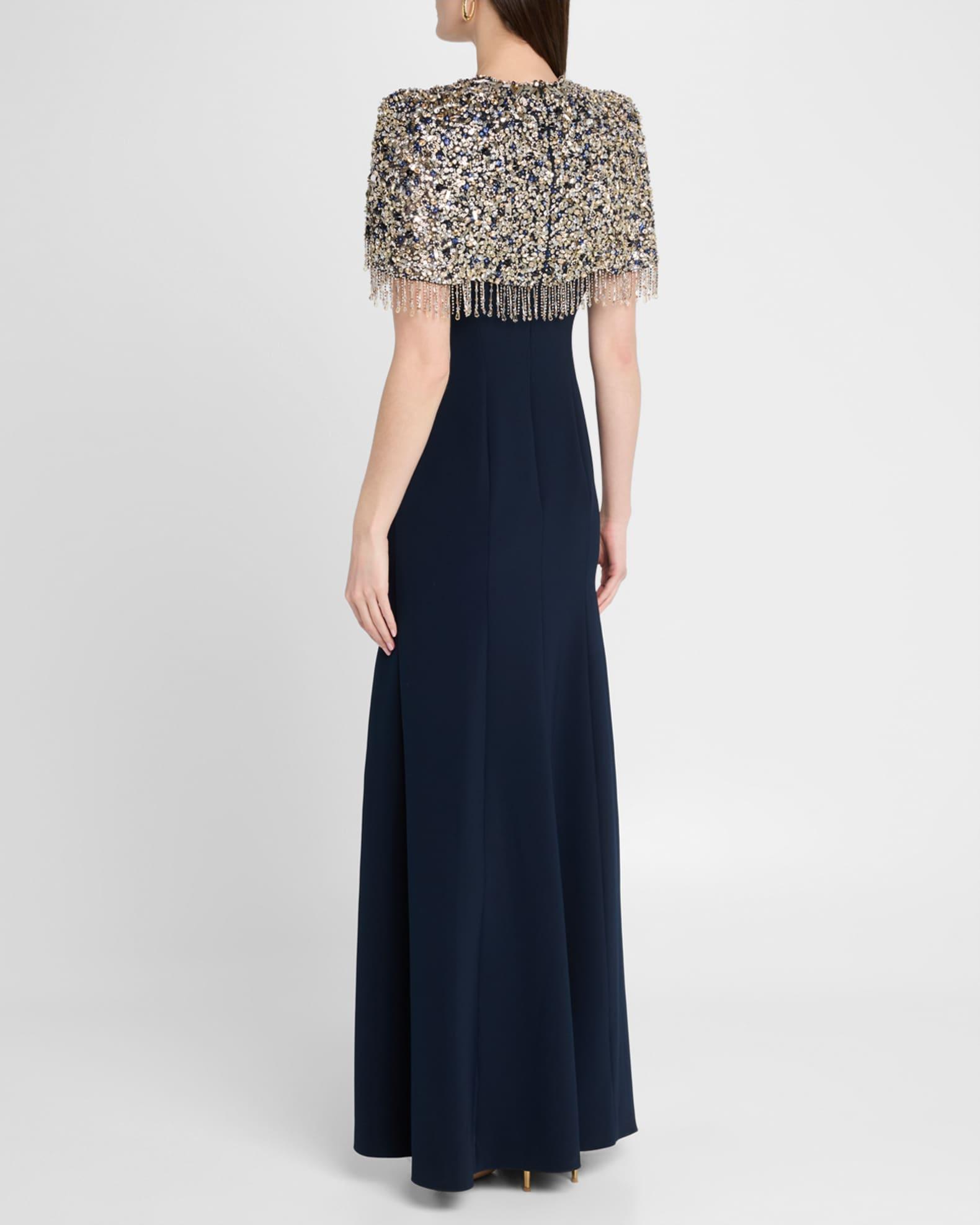 Rana Embellished Cape Trumpet Gown