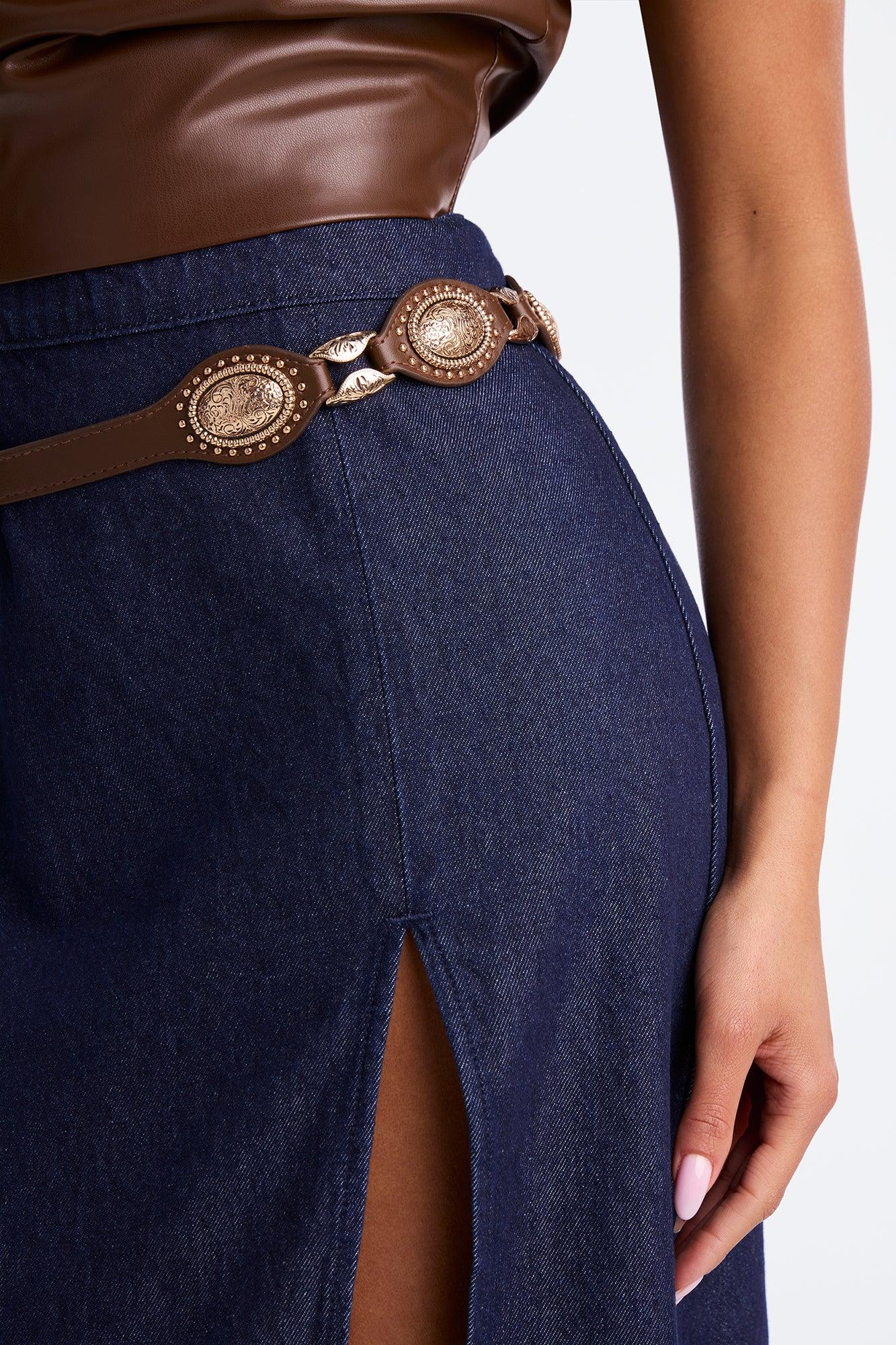 Rancho Glam Faux Leather Belt - Gold/Brown Female
