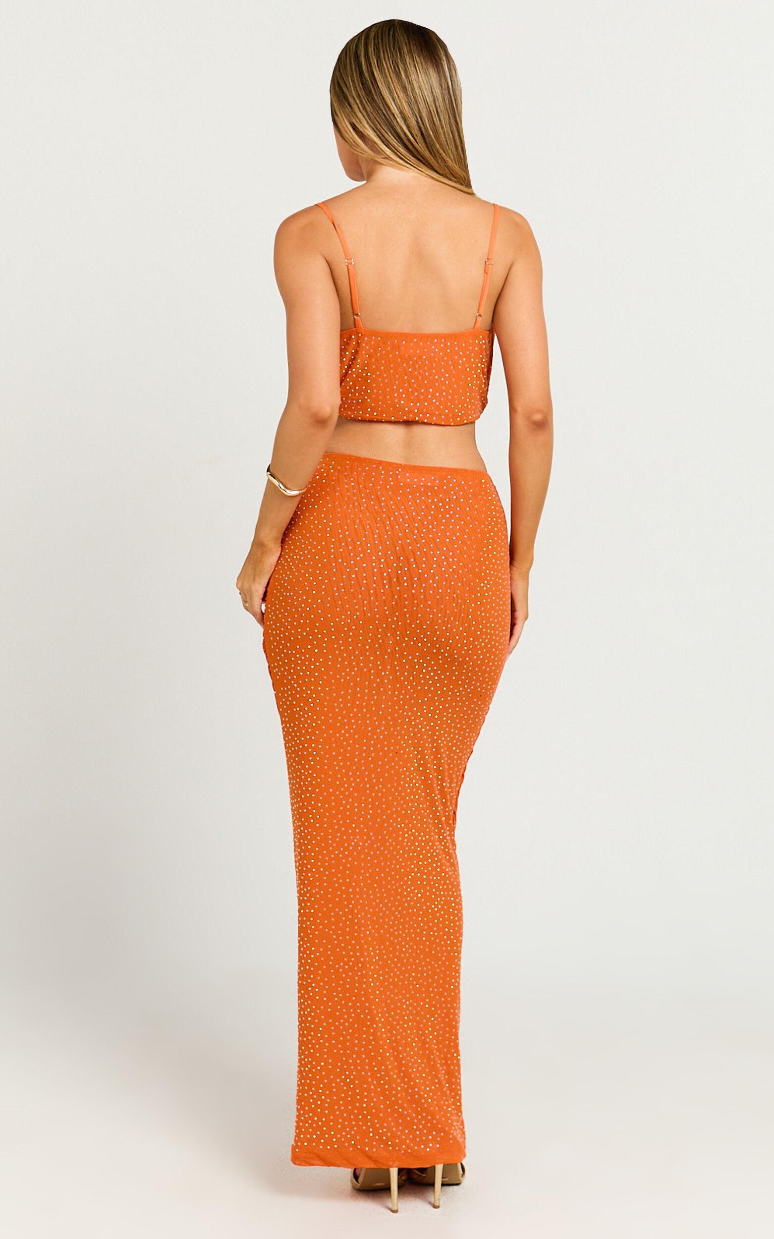 Discover the perfect look in our Raphaelle Two Piece Set, featuring a ruched bodycon top and midi skirt set in a vibrant orange that's sure to turn heads. This stunning co-ord skirts ensemble is the ultimate choice for your next party night, blending fashion-forward style with a touch of sophistication. Designed for the modern Gen Z and Millennial who loves to make a statement, this set showcases a trendy cowl neckline that adds an air of elegance to the sleeveless, body-hugging top, perfectly paired with a figure-flattering midi skirt.Product Details:Zips featureInner liningCo-ord skirtsJersey fabricCowl necklineParty night perfectMidi lengthSleeveless designPolyester materialSize and FitSize S / 8 top piece length: 37cm / 14.57inSize S / 8 lower piece length: 90cm / 35.43inMaterial and CareMain Fabric: 93% Polyester, 7% Spandex Lining: 93% Polyester, 7% SpandexHigh Stretch