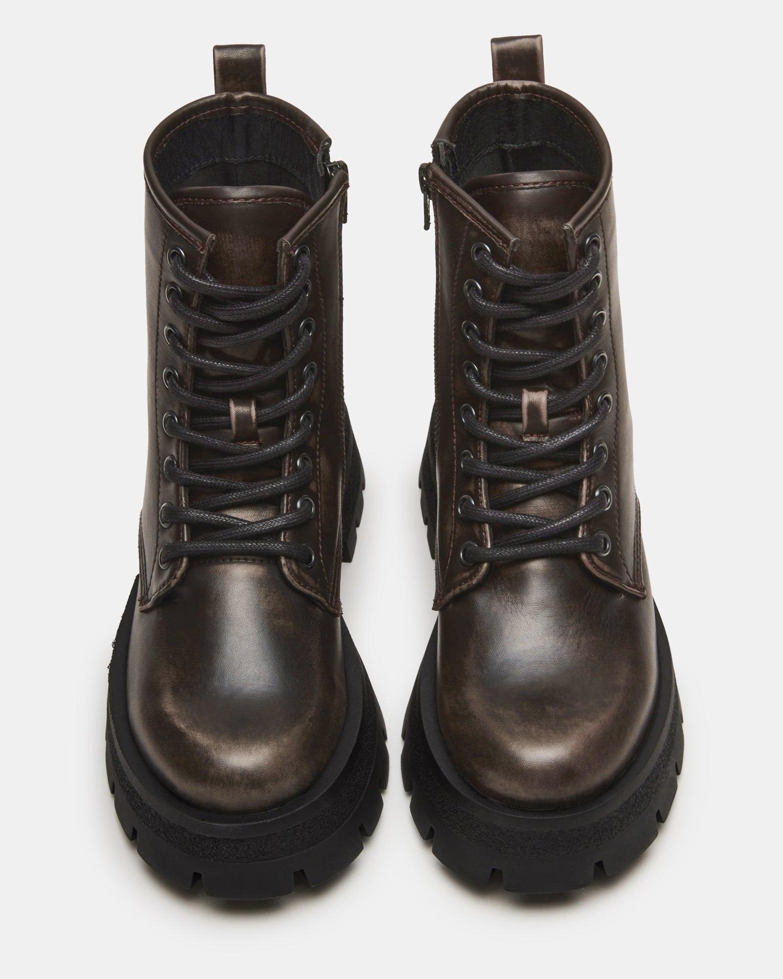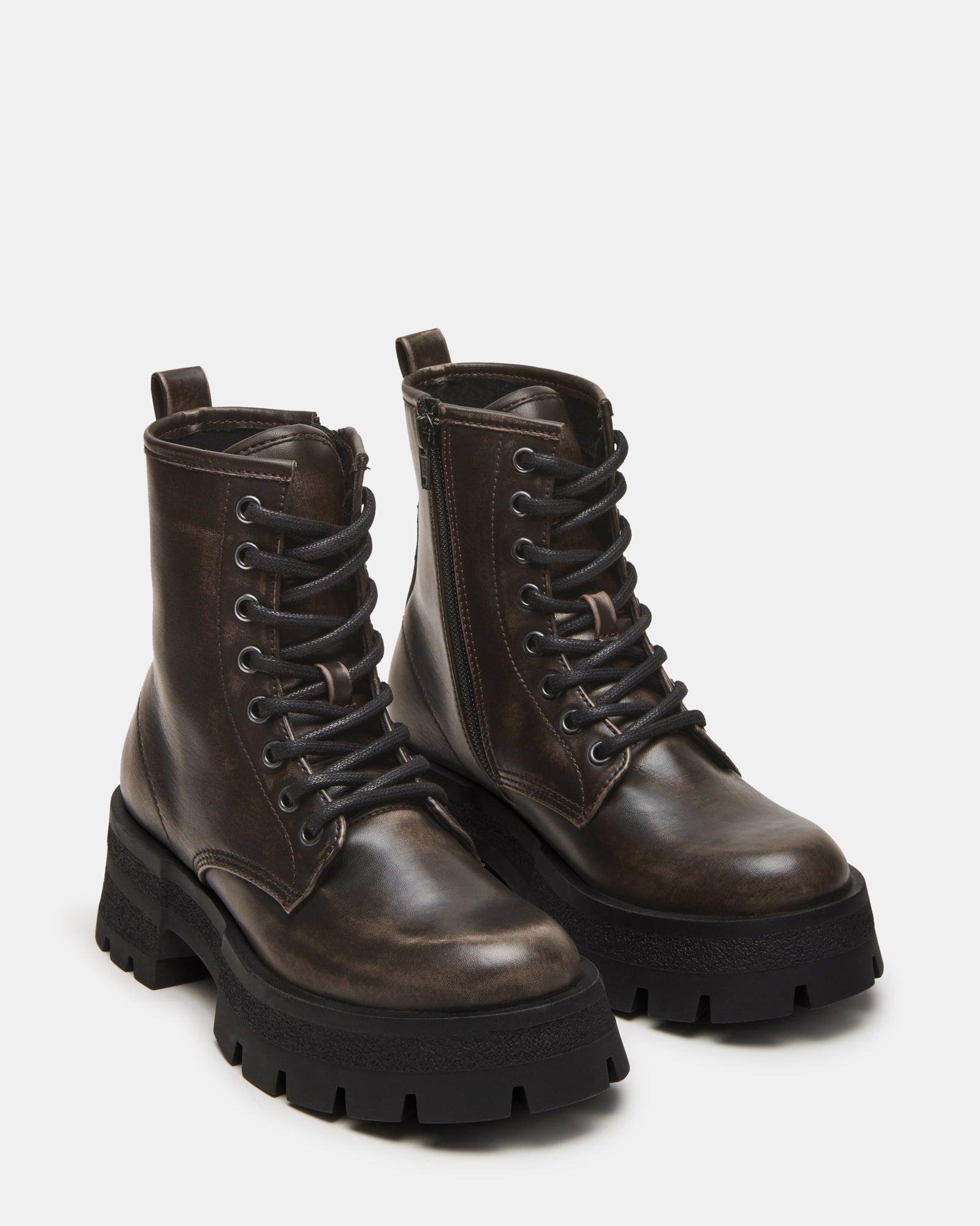 These RASCAL combat ankle booties feature a lug sole for added traction and durability. With a comfortable fit and sleek design, these boots are a must-have for any adventure seeker. 2.25 inch heel height 10 inch shaft circumference 5.75 inch shaft height Vegan leather upper material Textile and vegan leather lining Vegan leather sock Synthetic sole Imported