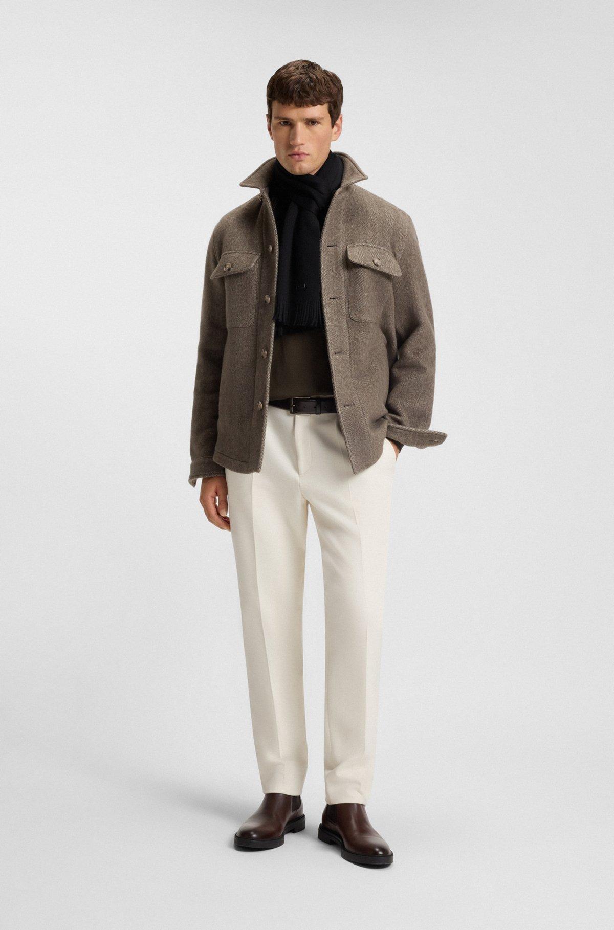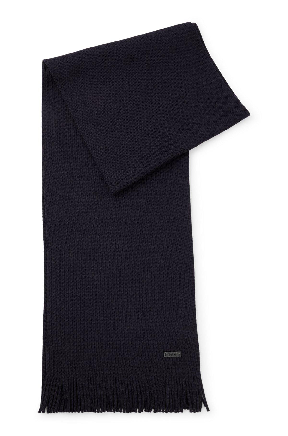With a matching hat available, this BOSS Menswear scarf is a cozy winter essential. Elegant Raschel-knit in virgin wool. Synthetic coated fabric logo plaque. Synthetic coated fabric, sometimes referred to as faux leather, is a fabric designed to resemble real leather, and/or display a matte, glossy, smooth, or textured, coated appearance. Measurements: 170 x 25cm