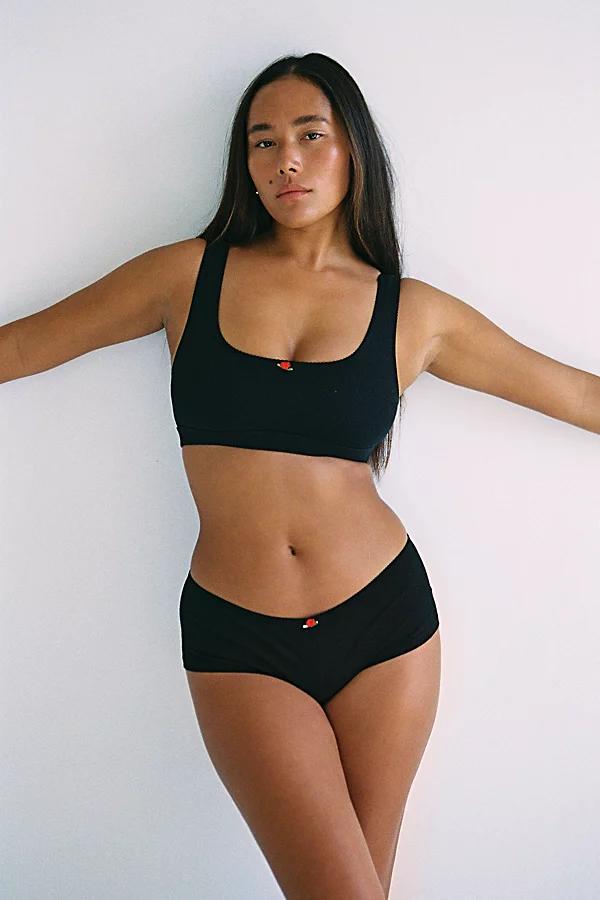 Crafted from our signature soft, breathable cotton, these low-rise boi briefs offer a perfect fit for every size. In sizes XS-XL, they sit low on the hips, while sizes 2X-3X feature a slightly higher rise for added comfort. With medium back coverage and a boy-short leg opening, they provide both style and ease. Finished with our signature lace trim and a satin rosebud at the center front, these briefs are perfect for everyday wear or pairing with our cotton basic tops. u00a0 -Low rise, boi short underwear brief -Breathable, cozy, cotton -Features lace trim & a satin rose in the center front -Mid coverage back Content + Care u00a0u00a0 95% cotton, 5% spandexu00a0u00a0 All cotton basics are pre-shrunk however to ensure a long life we recommend washing this garment in cold water and line drying or tumbling on low heat. u00a0u00a0 Ethically made in Ventura, CAu00a0 u00a0 Size + Fit u00a0 u00a0 This style is available in XS-3X. To find your best fit, please use our size chart. The boi short brief runs true to size. However, if you are between sizes, we recommend sizing up in this style. Ali is wearing a size XL and Meeya is wearing size XS in this style. RAT BOI Shorty Boi Brief in Onyx, Womens at Urban Outfitters