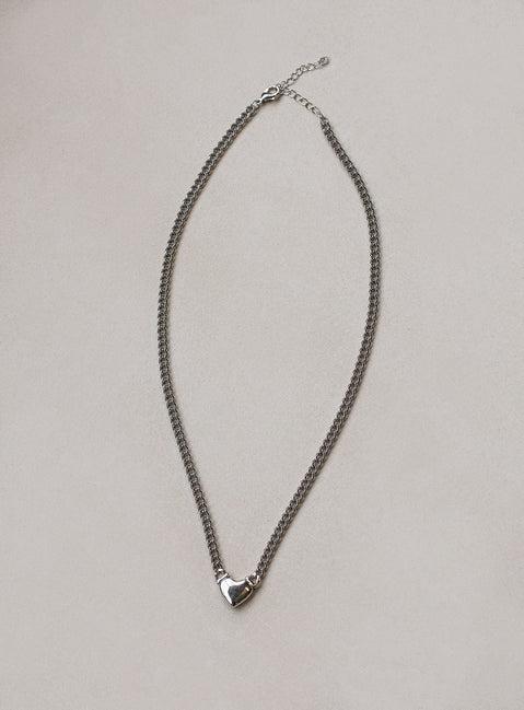 Necklace Silver-toned chain Princess Polly Lower Impact 84% Reclaimed Steel 15% Reclaimed Zinc 1% Steel Heart pendant Lobster clasp fastening Length adjusts from: 45.5cm - 52cm / 17.9 - 20.4