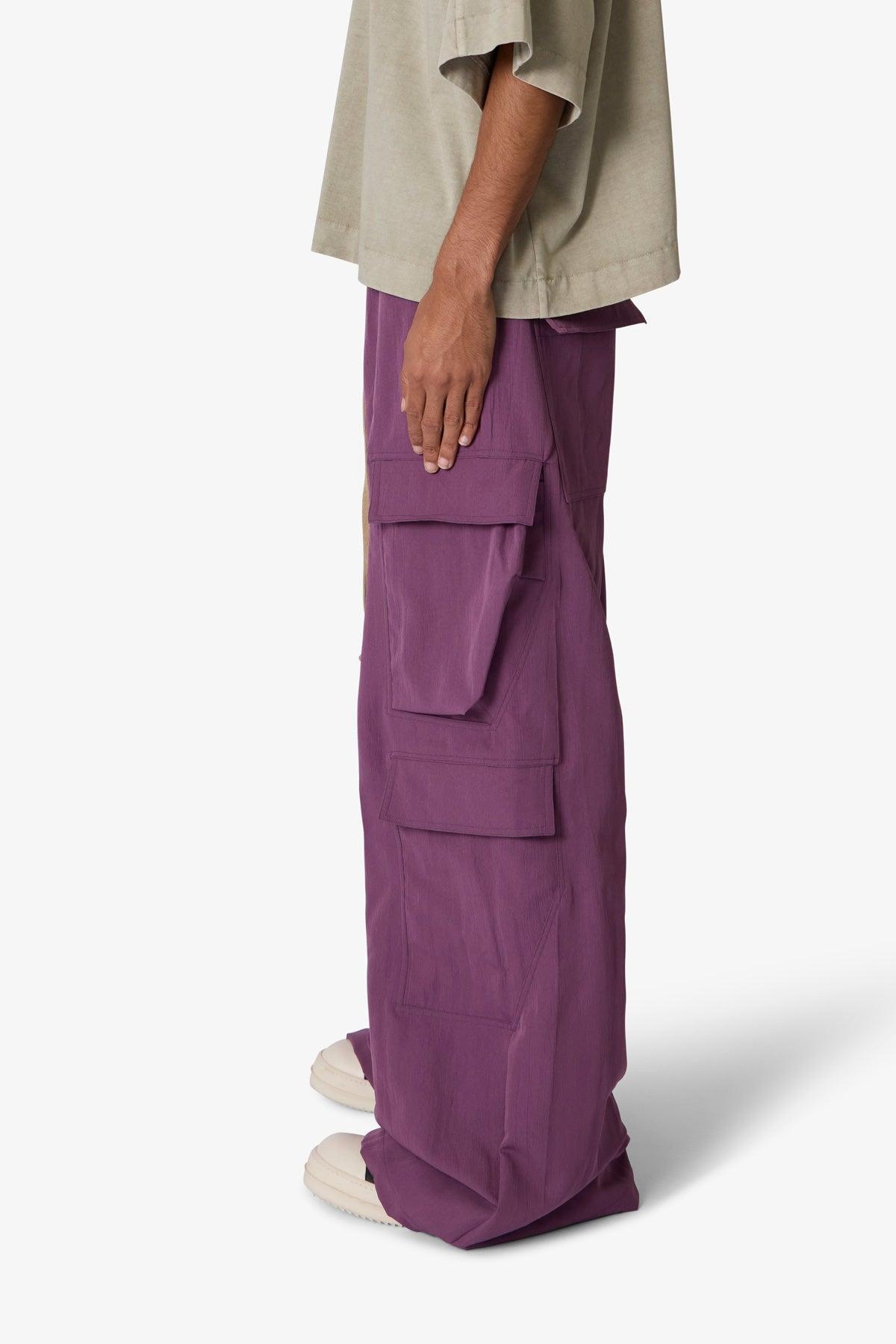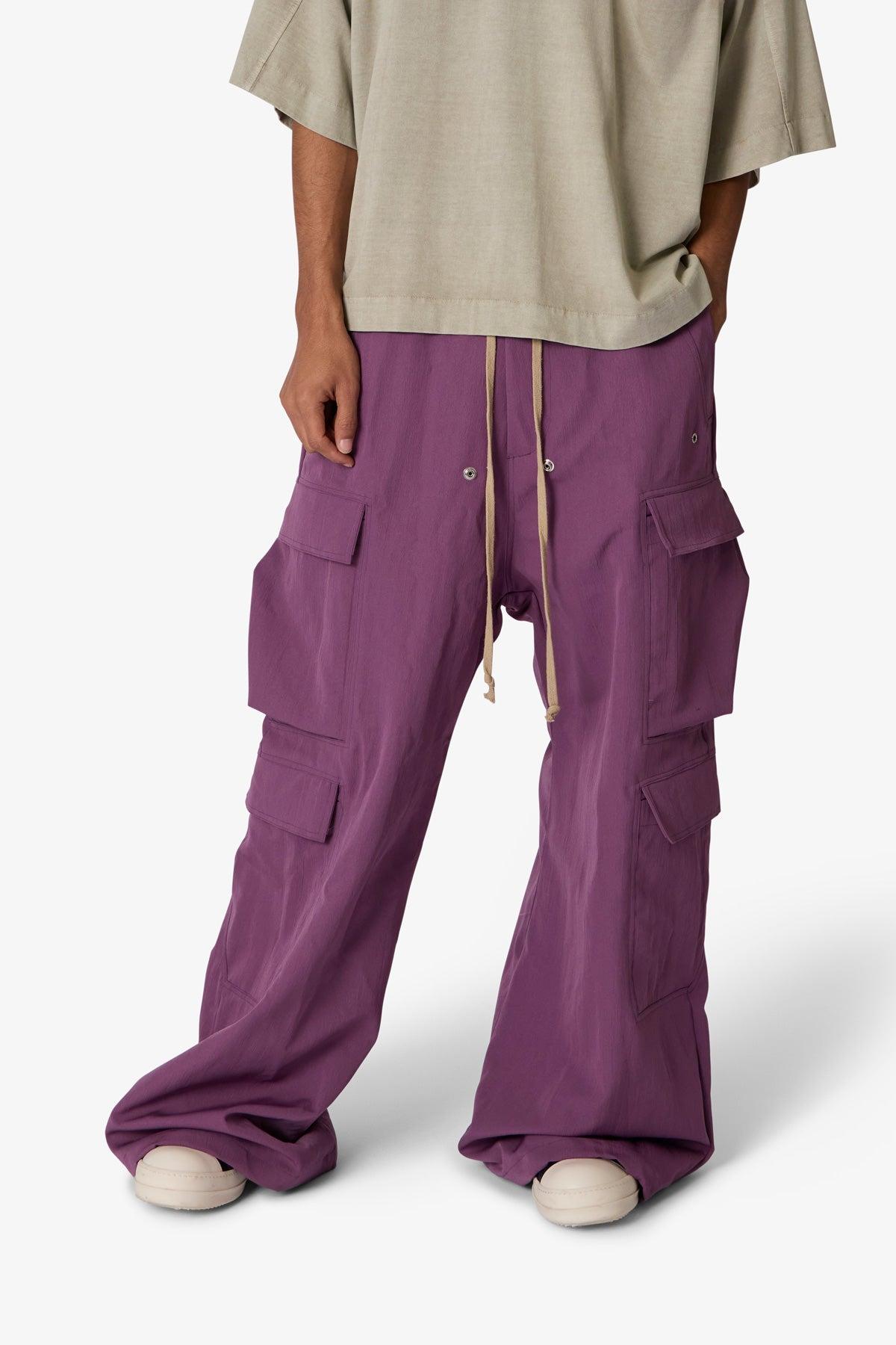 the Rave Double Cargo Pants are designed with a new oversized rave fit, constructed from a polyester fabric with a rinse wash, contrast drawcord, and finished with cargo pockets throughout. details ultra baggy fit throughout 100% polyester extended inseam model is 6’1, 140 lbs and wears a size 30
