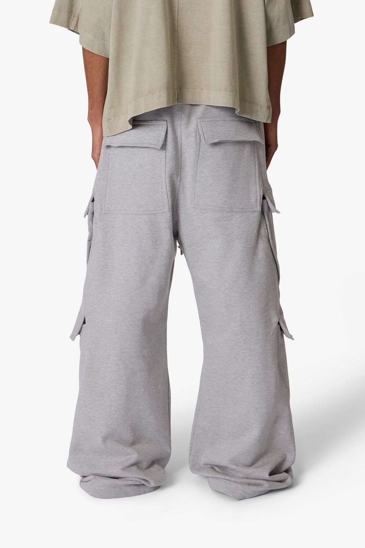 the Rave Double Cargo Sweatpants are designed with a new oversized rave fit, constructed from a cotton fleece fabric, contrast drawcord, and finished with cargo pockets throughout. details ultra baggy fit throughout 100% cotton extended inseam model is 6’1, 140 lbs and wears a size 30