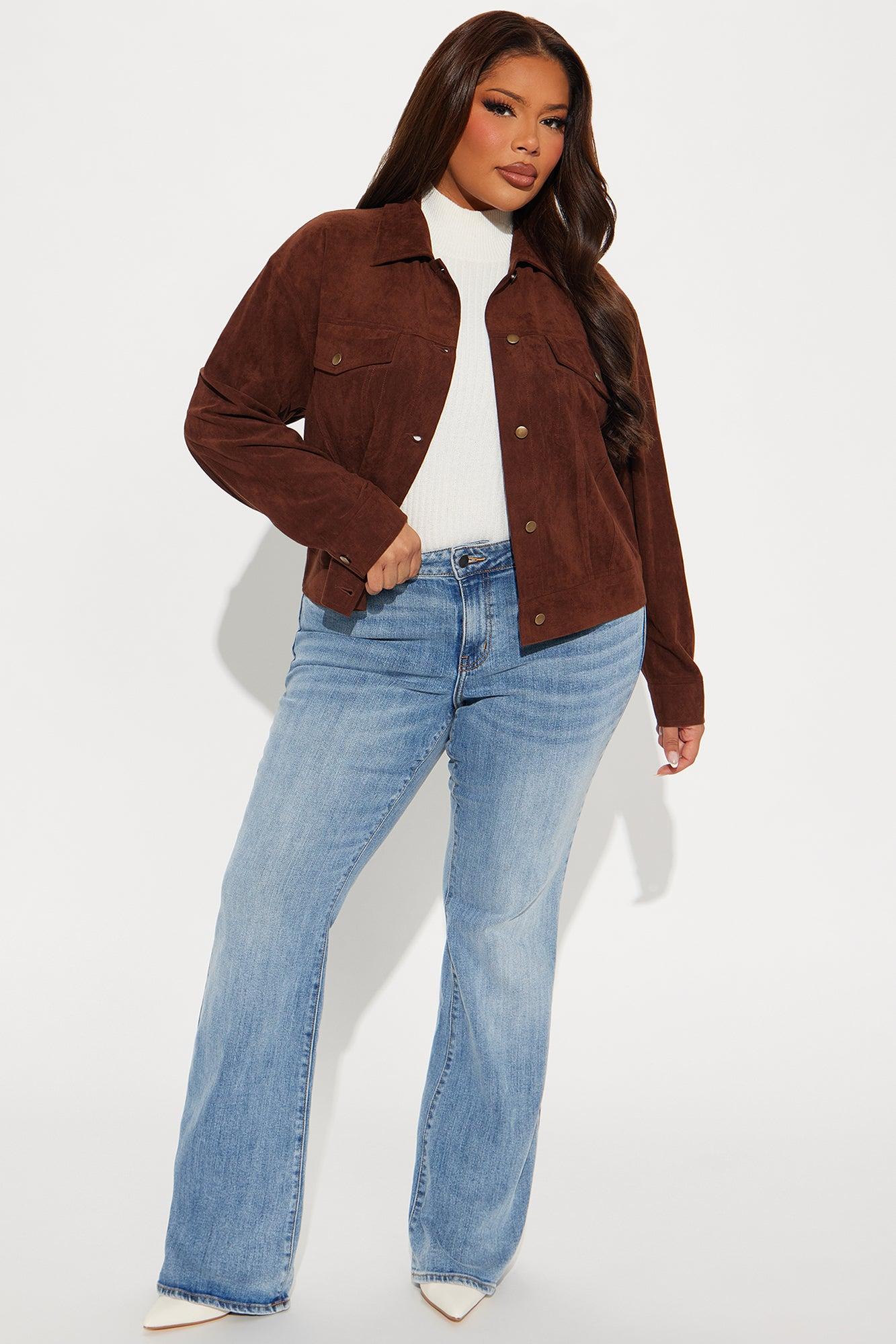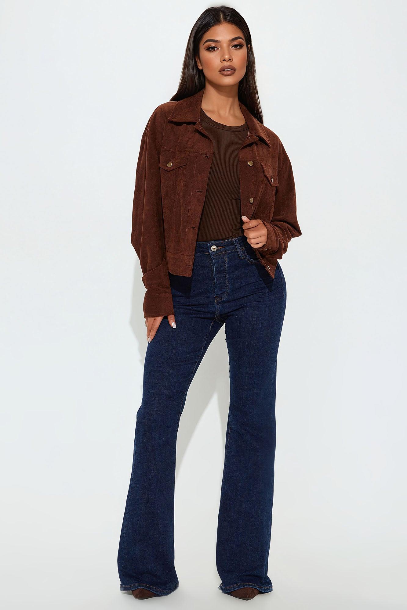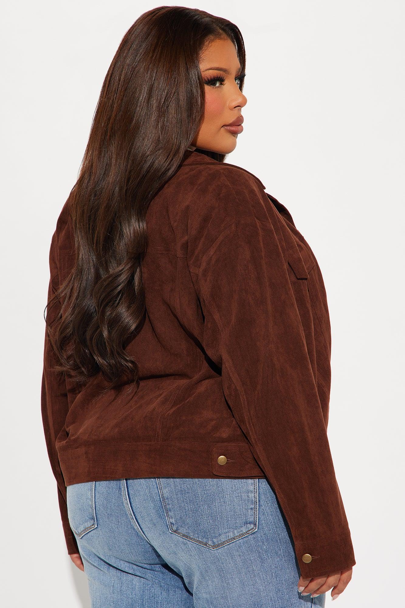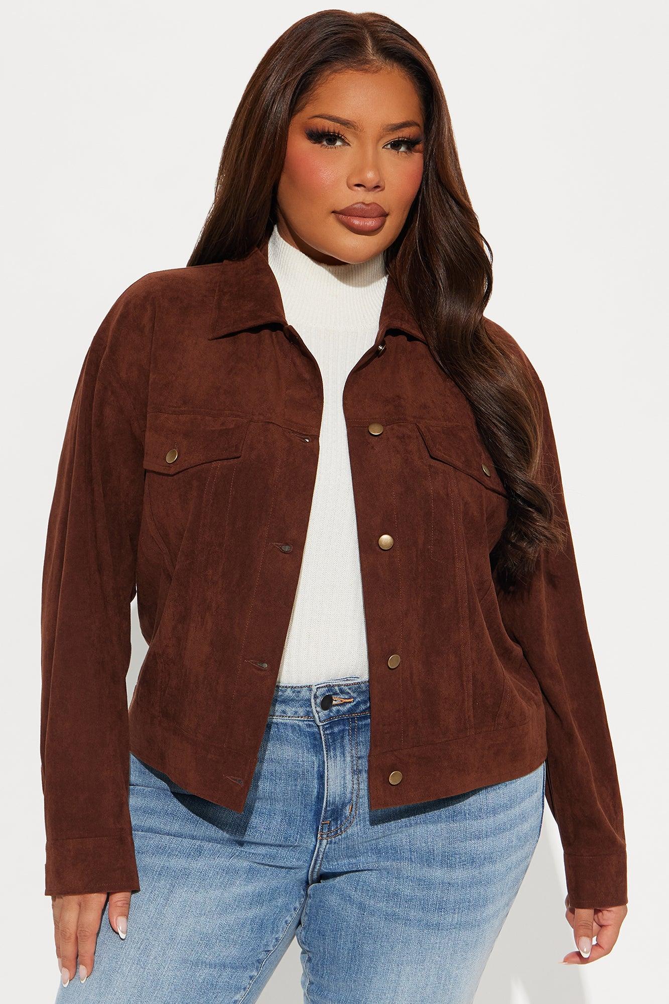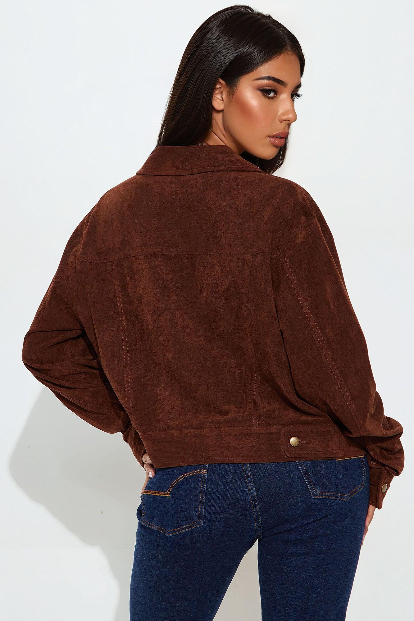 Available In Brown, Olive And Wine. Jacket Collar Long Sleeve Faux Suede Pockets Button Closure Cropped Fully Lined Self: 90% Polyester 10% Spandex Lining: 97% Polyester 3% Spandex Imported California Proposition 65WARNING: Cancer and Reproductive Harm - www.P65Warnings.ca.gov.