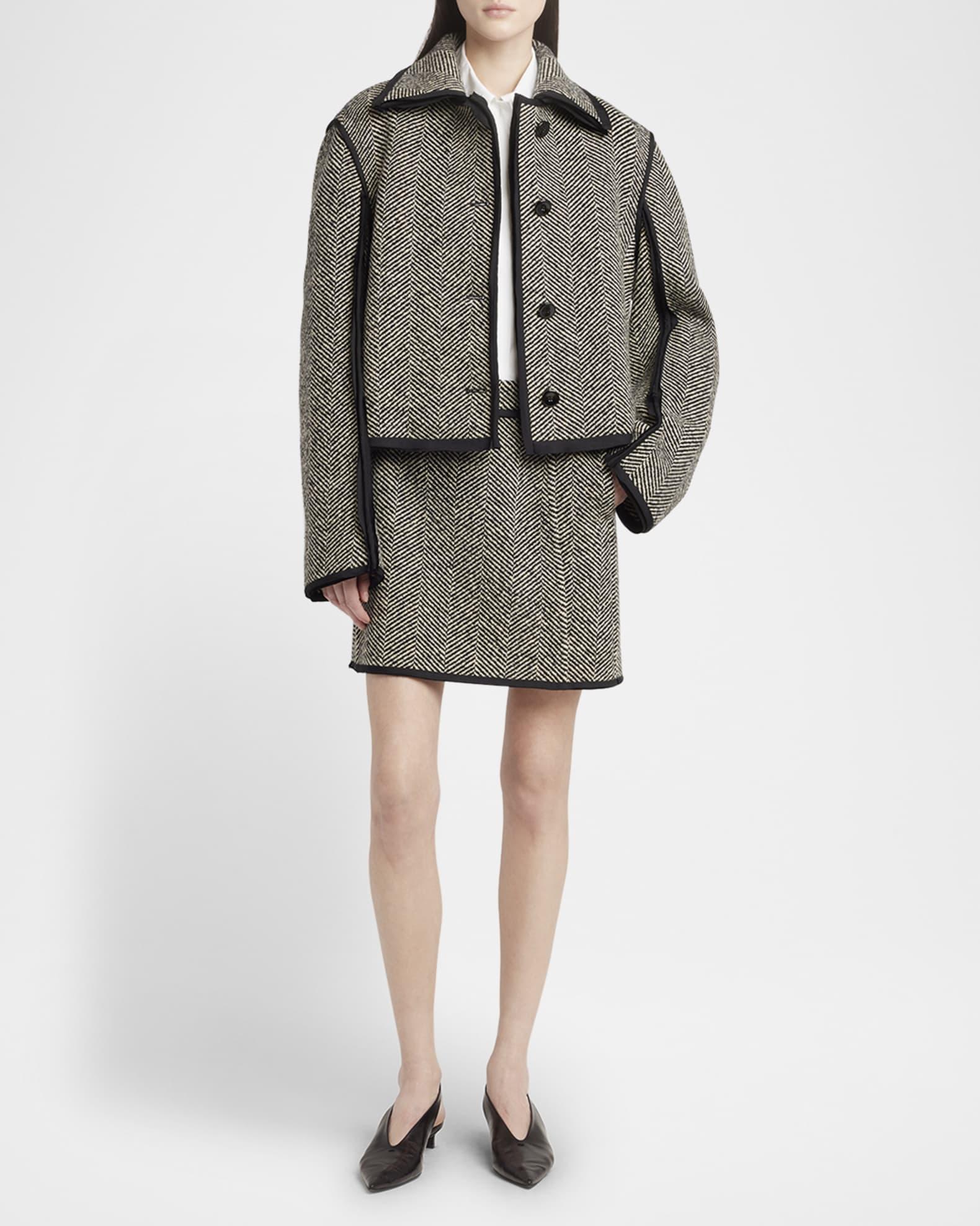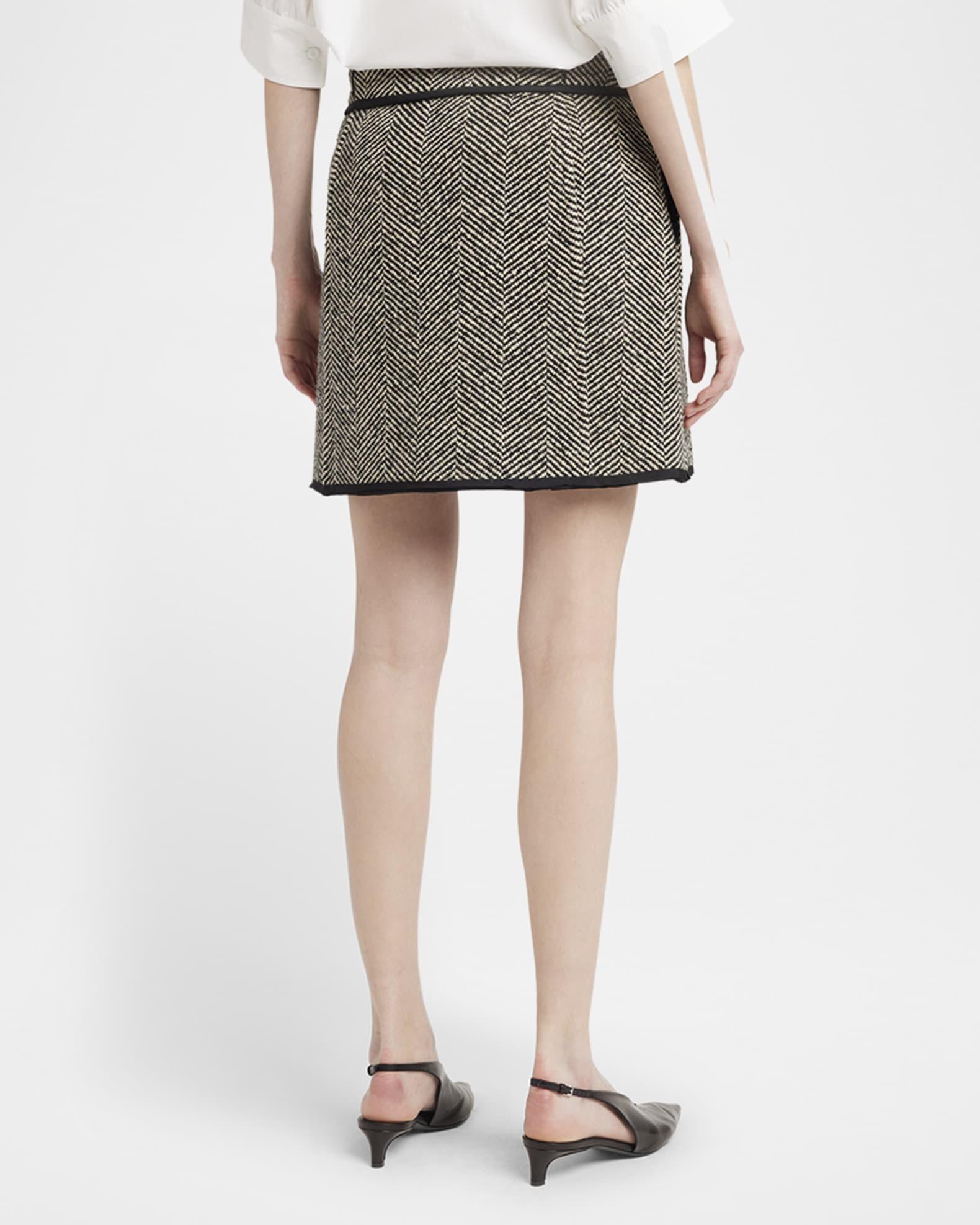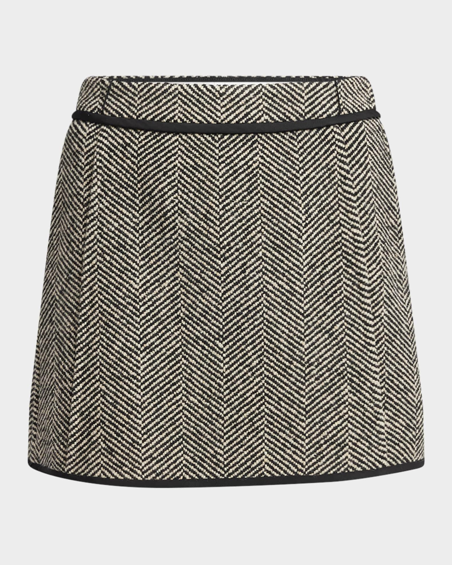 Raw-Edge Trim Herringbone Mini Skirt