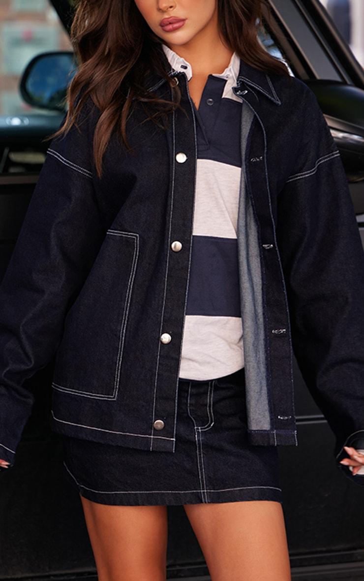 Elevate your denim game with this considered indigo shirt. The raw indigo wash offers a depth of color, punctuated by contrast stitching that highlights the pocket patch detailing. Crafted for confident styling, the robust denim offers structure whilst retaining a comfortable feel. Fasten this shirt over a ribbed roll-neck for an elevated daytime look, or pair with tailored pants from our bottoms collection for a contemporary take on workwear. Length approx 74cm/29inch (Based on a sample size UK 8) Model wears size UK 8/ EU 36/ AUS 8/ US 4Model Height - 5ft 6inchp]:!mb-4inch>Brand: PrettyLittleThingCategory: DenimProduct type: Denim ShirtColor: Raw Indigo WashMaterial: Stretch DenimOccasion: Day