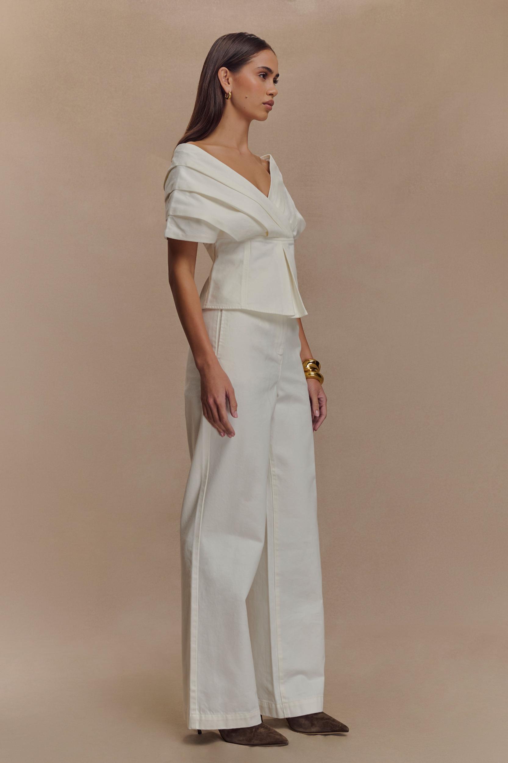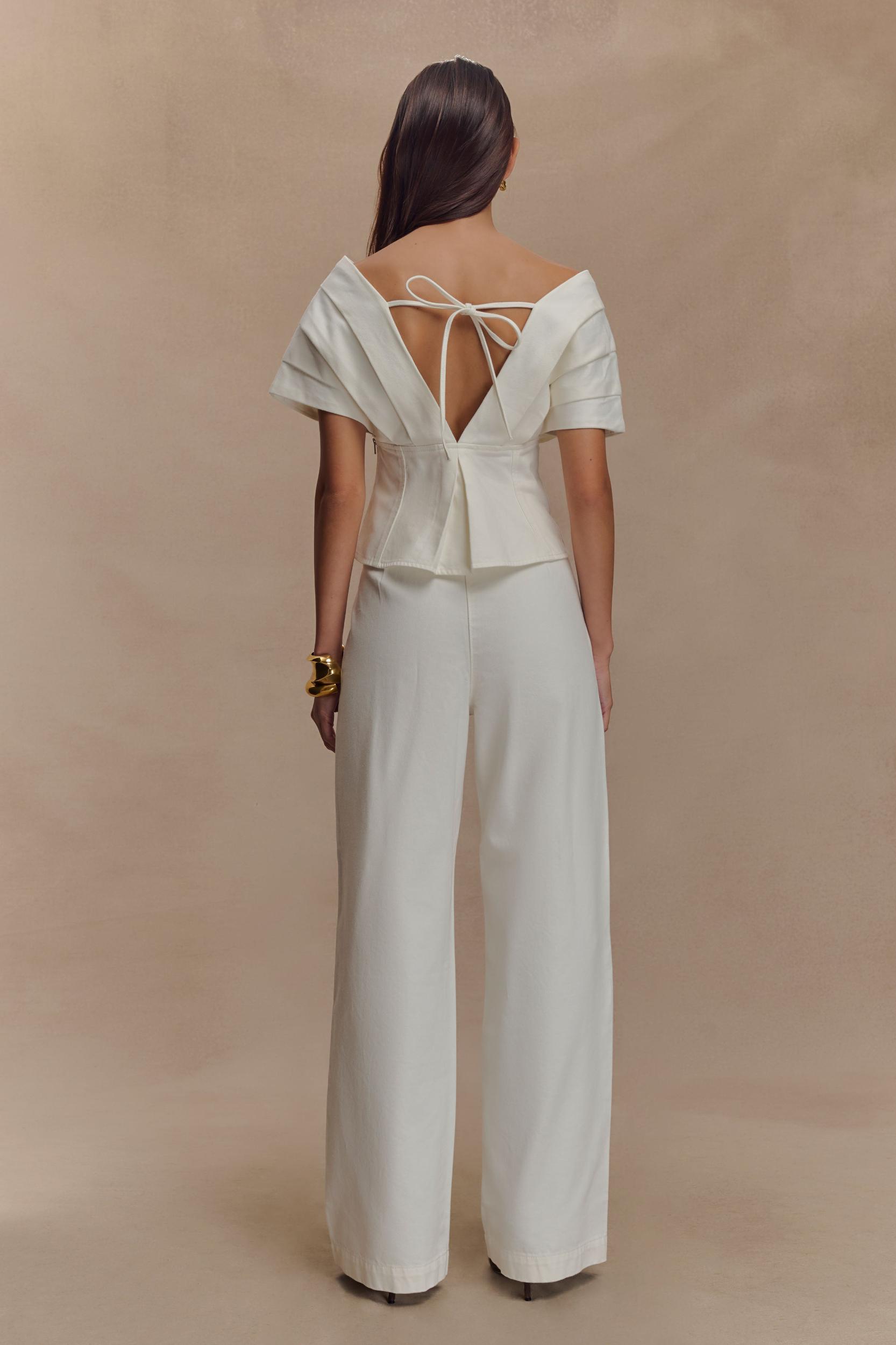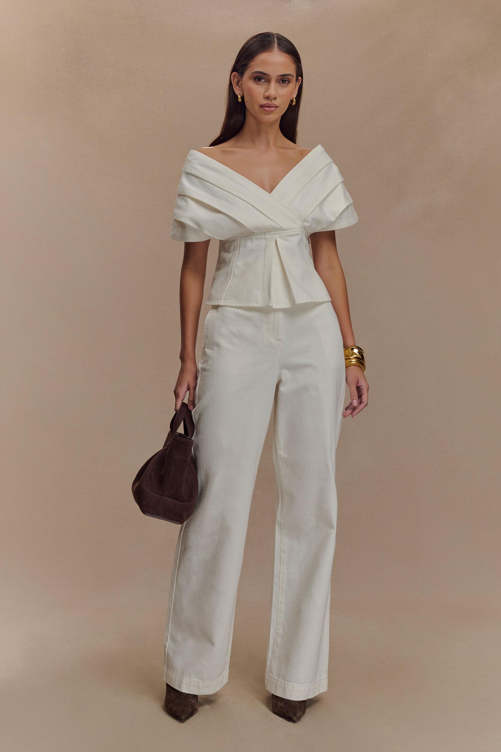Soft edge, structured style. The RAYNE Off Shoulder Denim Top brings a relaxed elegance to structured dressing. Featuring a flattering V neckline and off-the-shoulder silhouette, this top is designed with an adjustable back strap for a custom fit. The relaxed shape balances effortlessly with its tailored finish, while the side zip and full lining ensure comfort and ease. Pair with the Rayne Wide Leg Denim Jeans for a double denim moment that feels fresh, modern, and endlessly wearable.