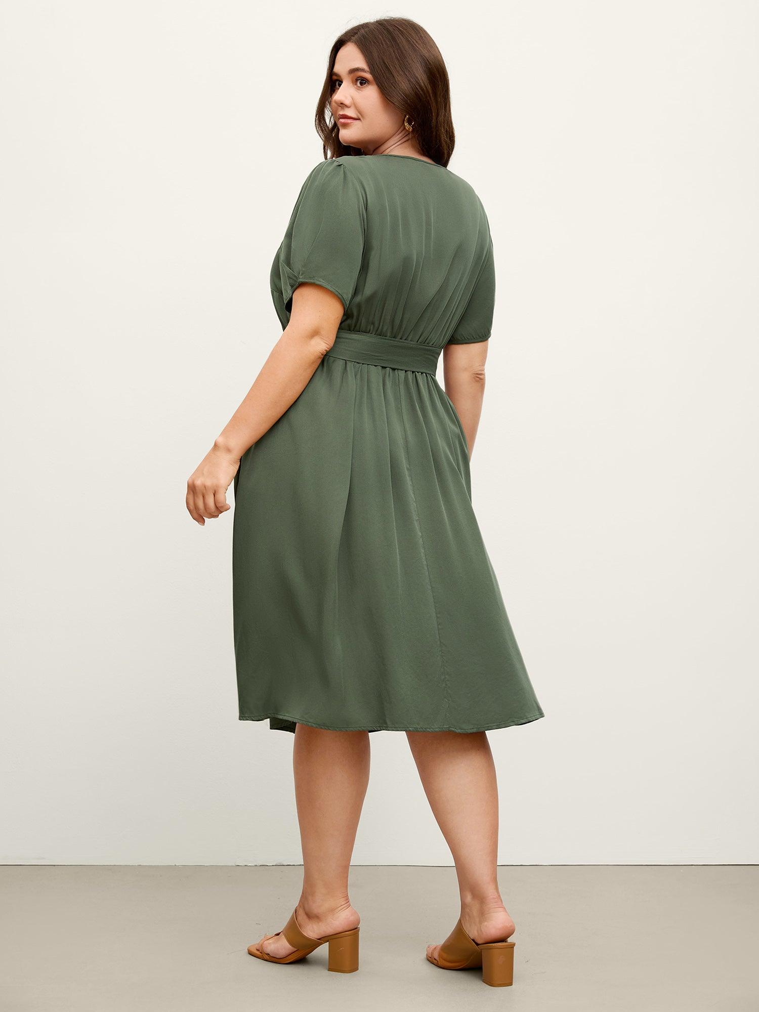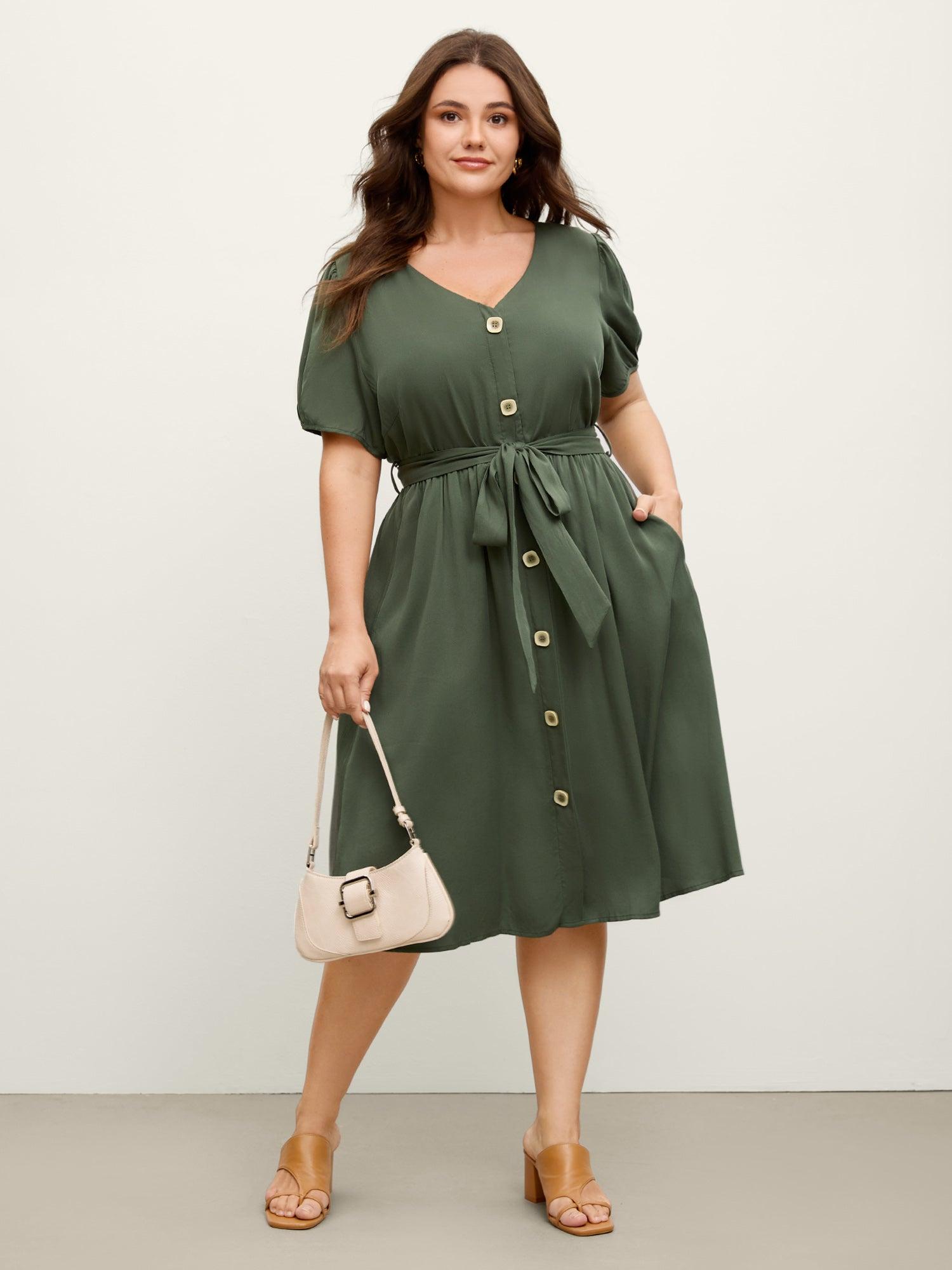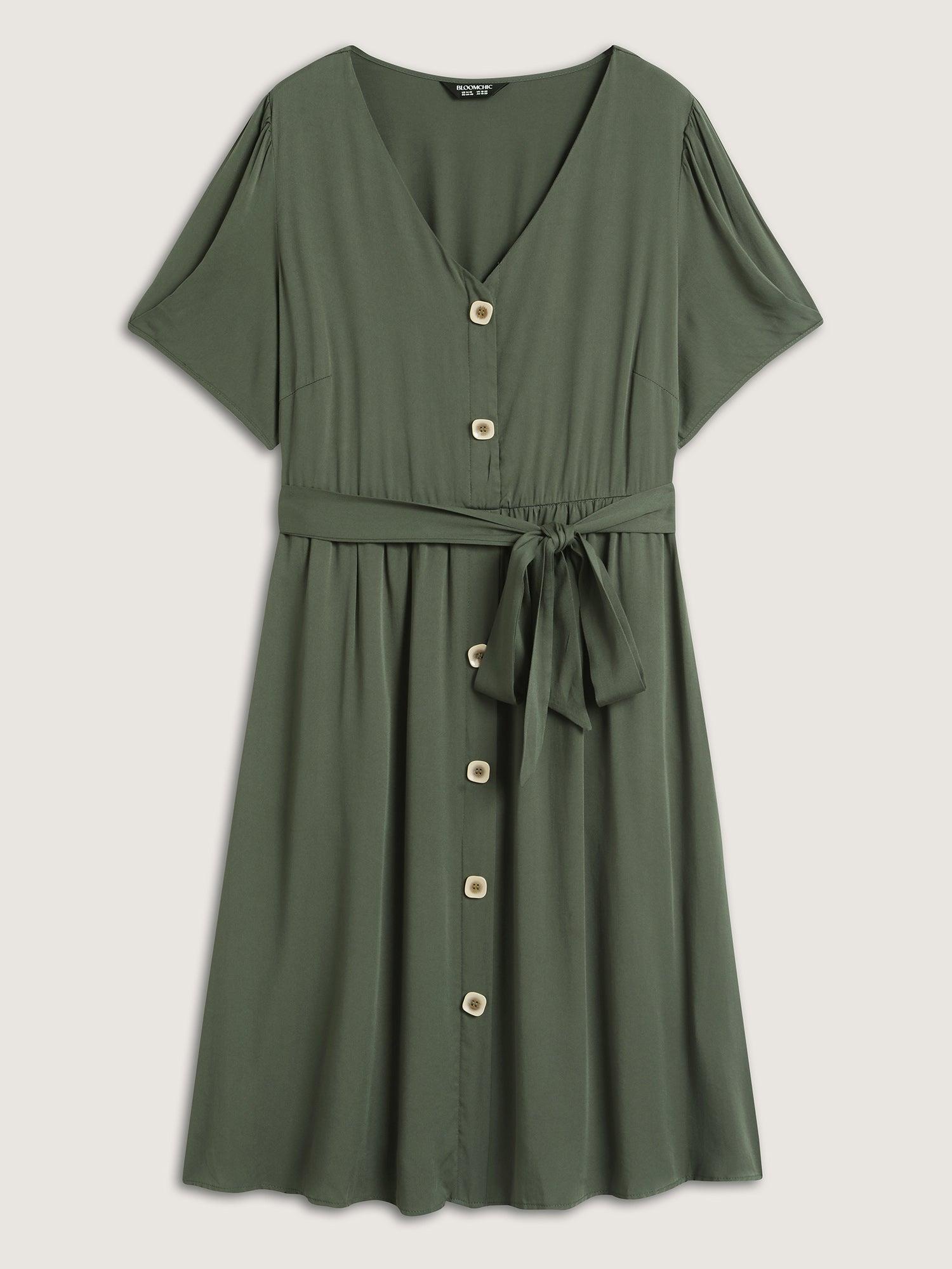 Shop Rayon Button Placket Belted Waist Midi Dress now and redefine your style with confidence at BloomChic. Tailored for mid and plus-size women. This trendy Dress, sizes 10-30. You can never go wrong with BloomChic Dresses. Color:ArmyGreen;Neckline:V-neck;Sleeve Type:Regular Sleeve;Prints:Non;Pocket:Side seam pocket;Belt:Belt;Closure Type:Non