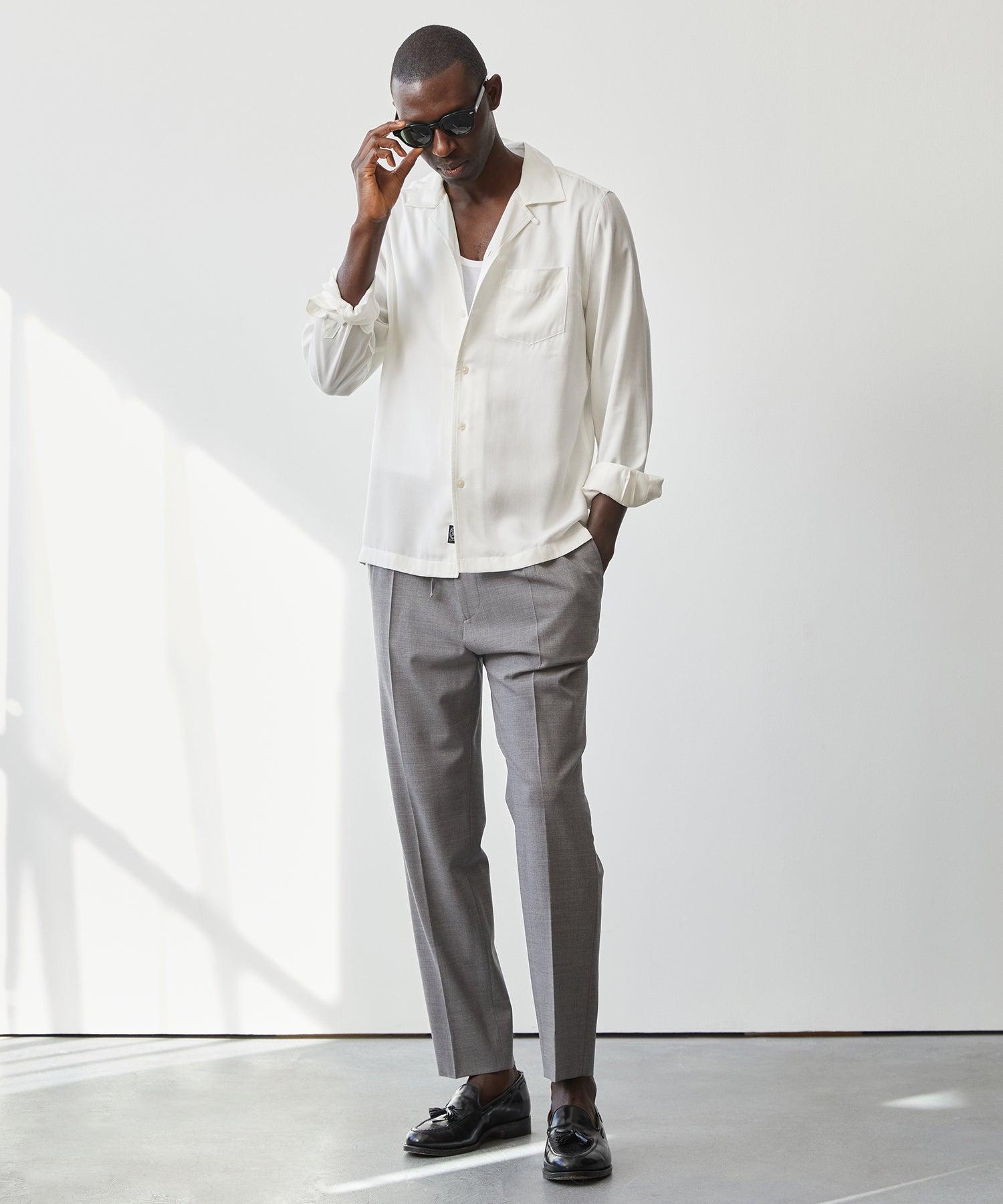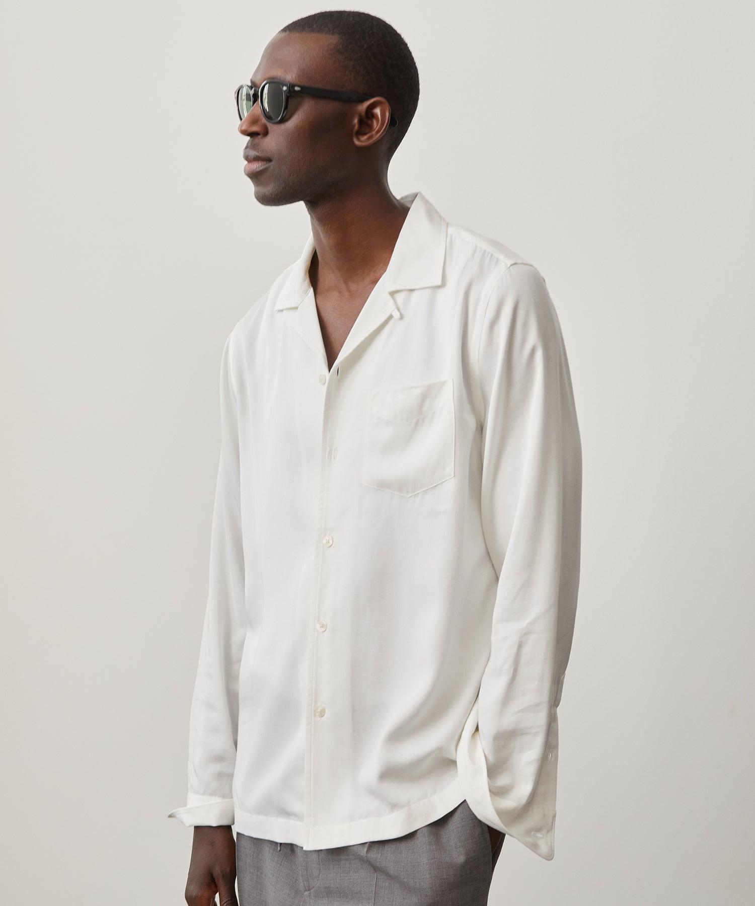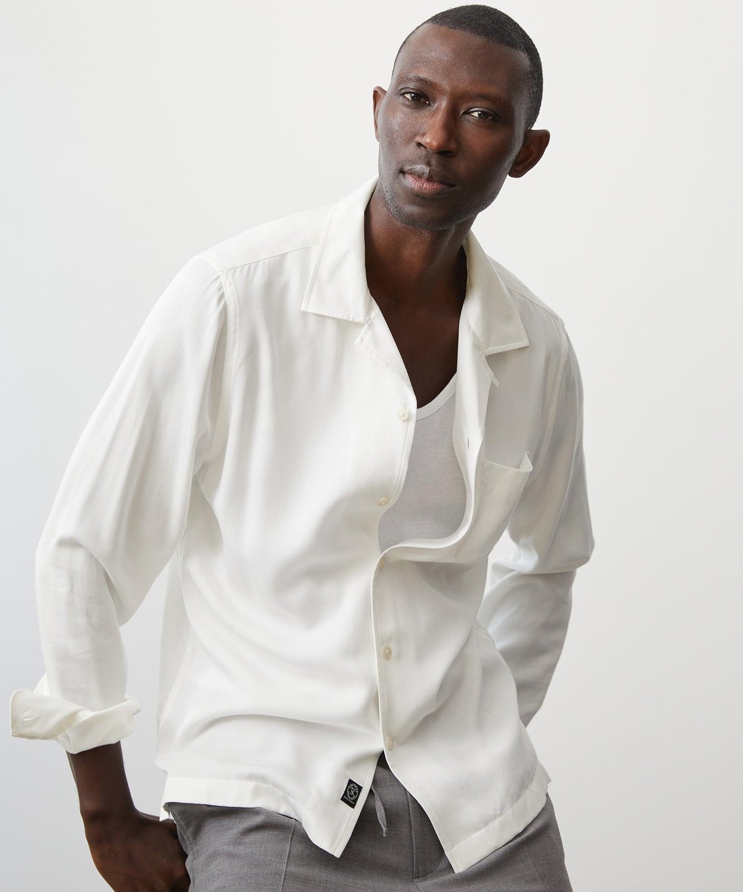All the laidback style of our bestselling Camp Collar Shirts, now in a new, long-sleeved silhouette. This easy-wearing shirt is made from a soft-but-solid rayon fabric that works well all on its own, layered and worn open over a tee, or even worn underneath a suit jacket or sport coat to add a casual pop of color to your look. 70% Viscose, 30% Lyocell Slim Fit Model is 6'2" and is wearing a size Medium Single Chest Pocket Camp Collar Made in China Dry clean or machine wash cold, gentle cycle, with like colors. Do not bleach. Tumble dry low, cool iron as needed. Style SH1040915
